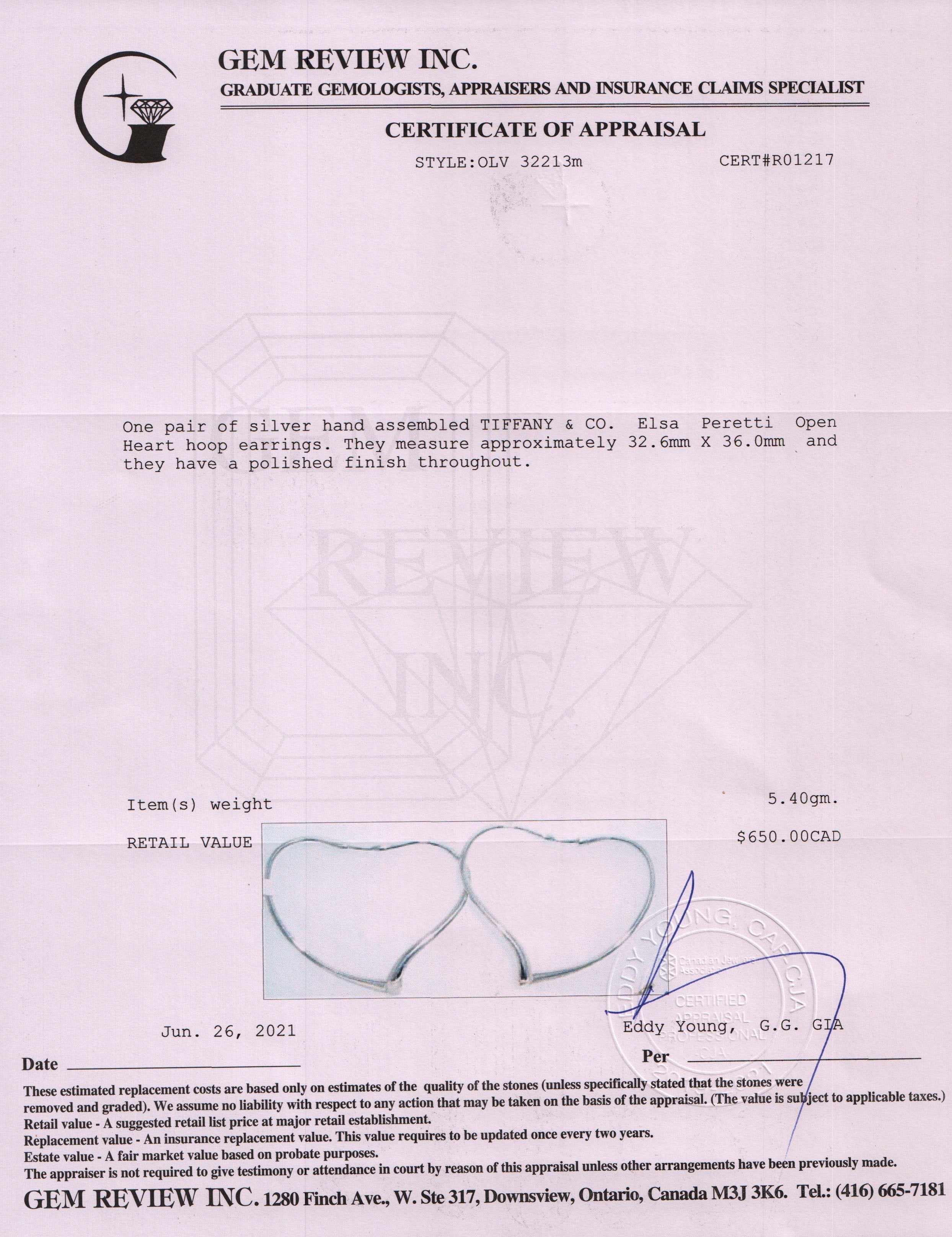 Tiffany & Co. Elsa Peretti Open Heart Hoop Earrings