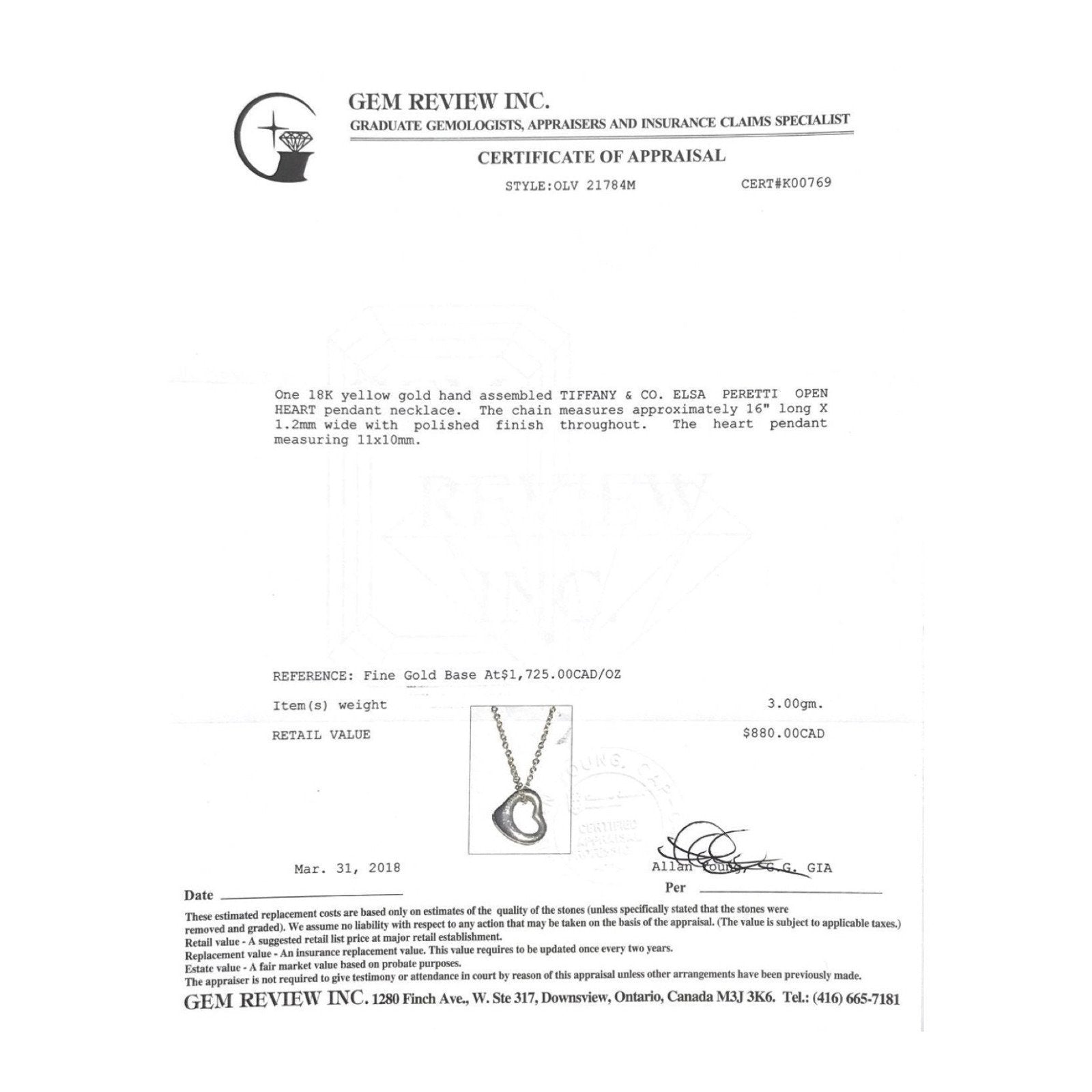 Tiffany & Co. Elsa Peretti Open Heart Pendant Necklace in 18k Yellow Gold