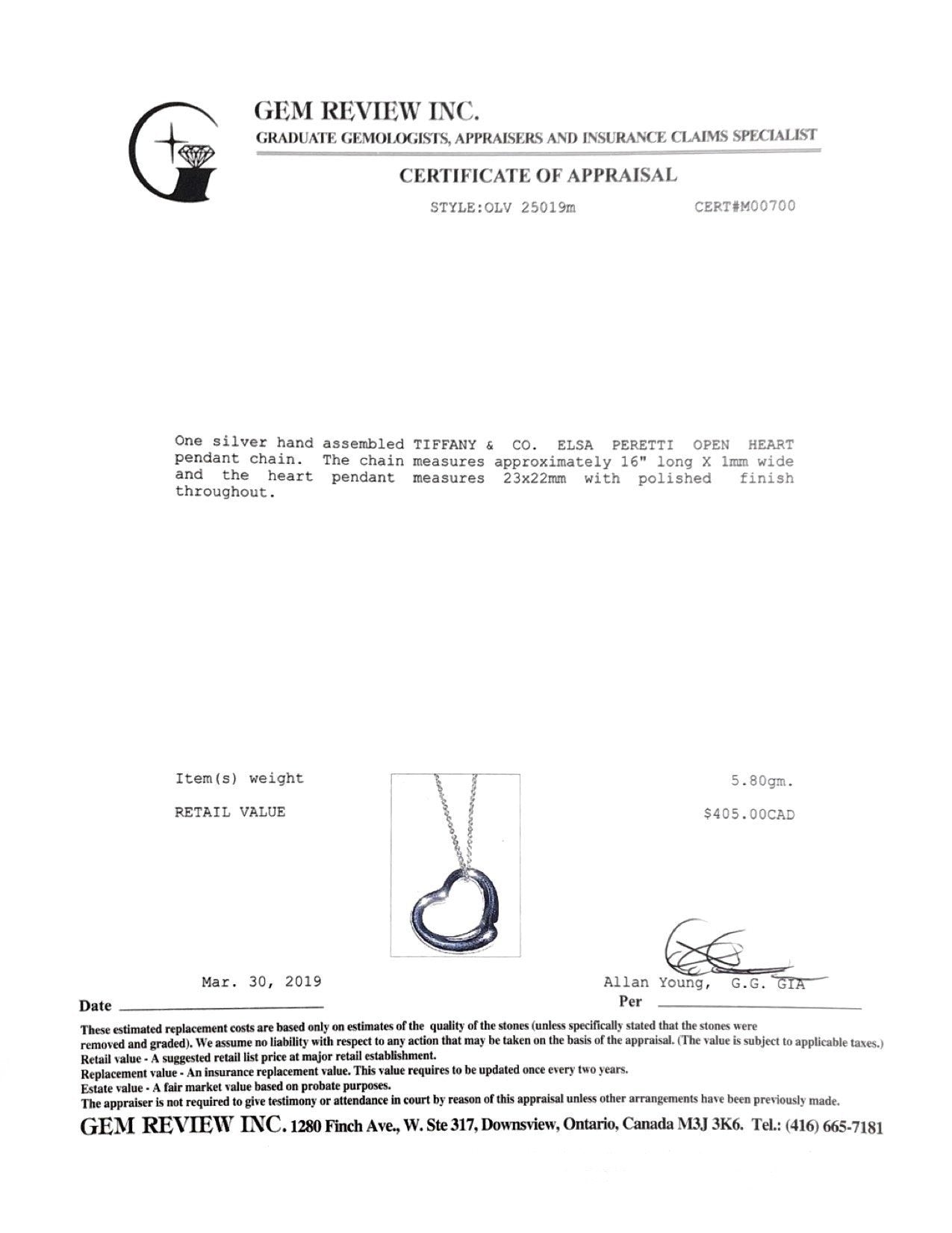 Tiffany & Co. Elsa Peretti Open Heart Pendant Necklace