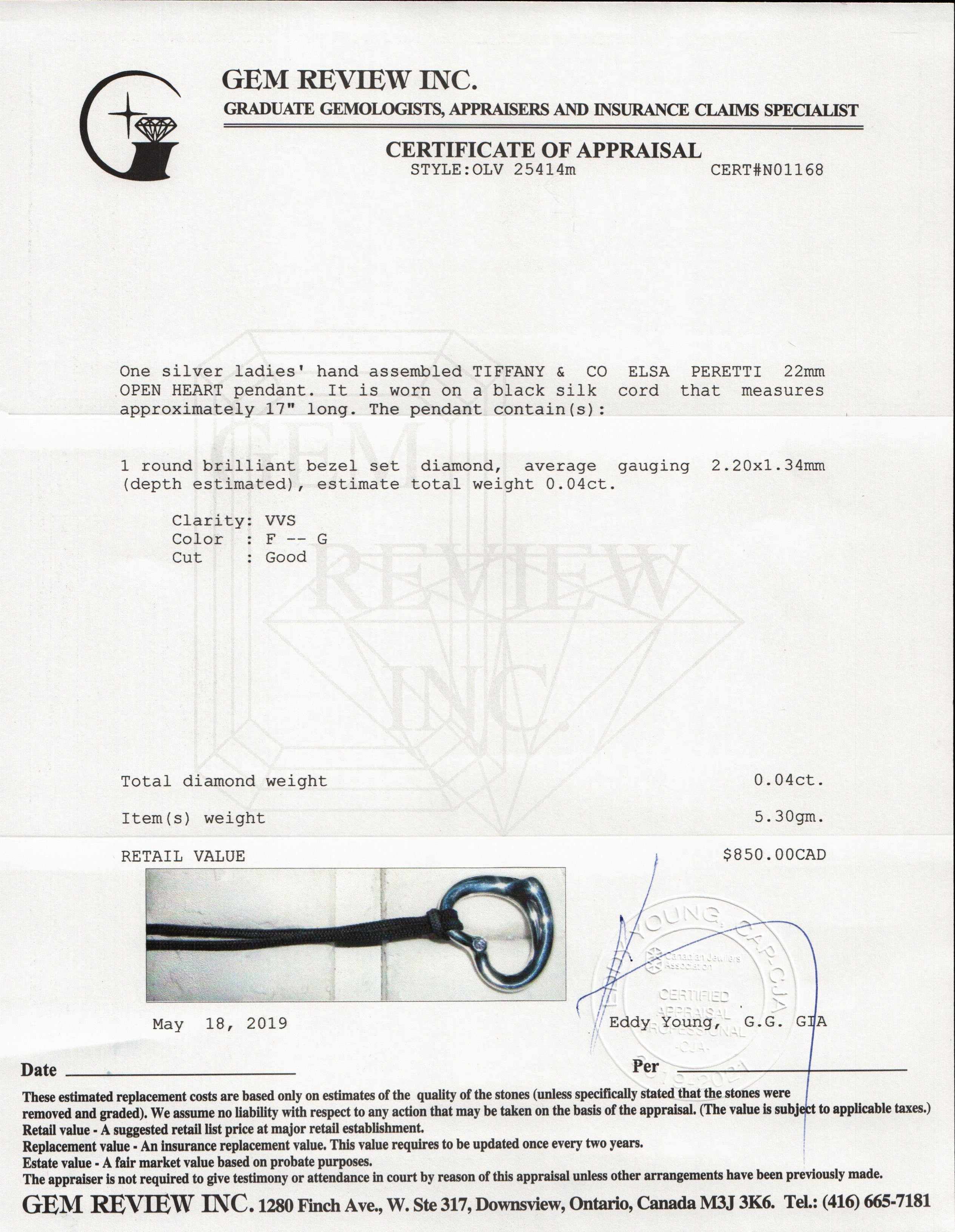Tiffany & Co. Elsa Peretti Open Heart Pendant Necklace with Diamond