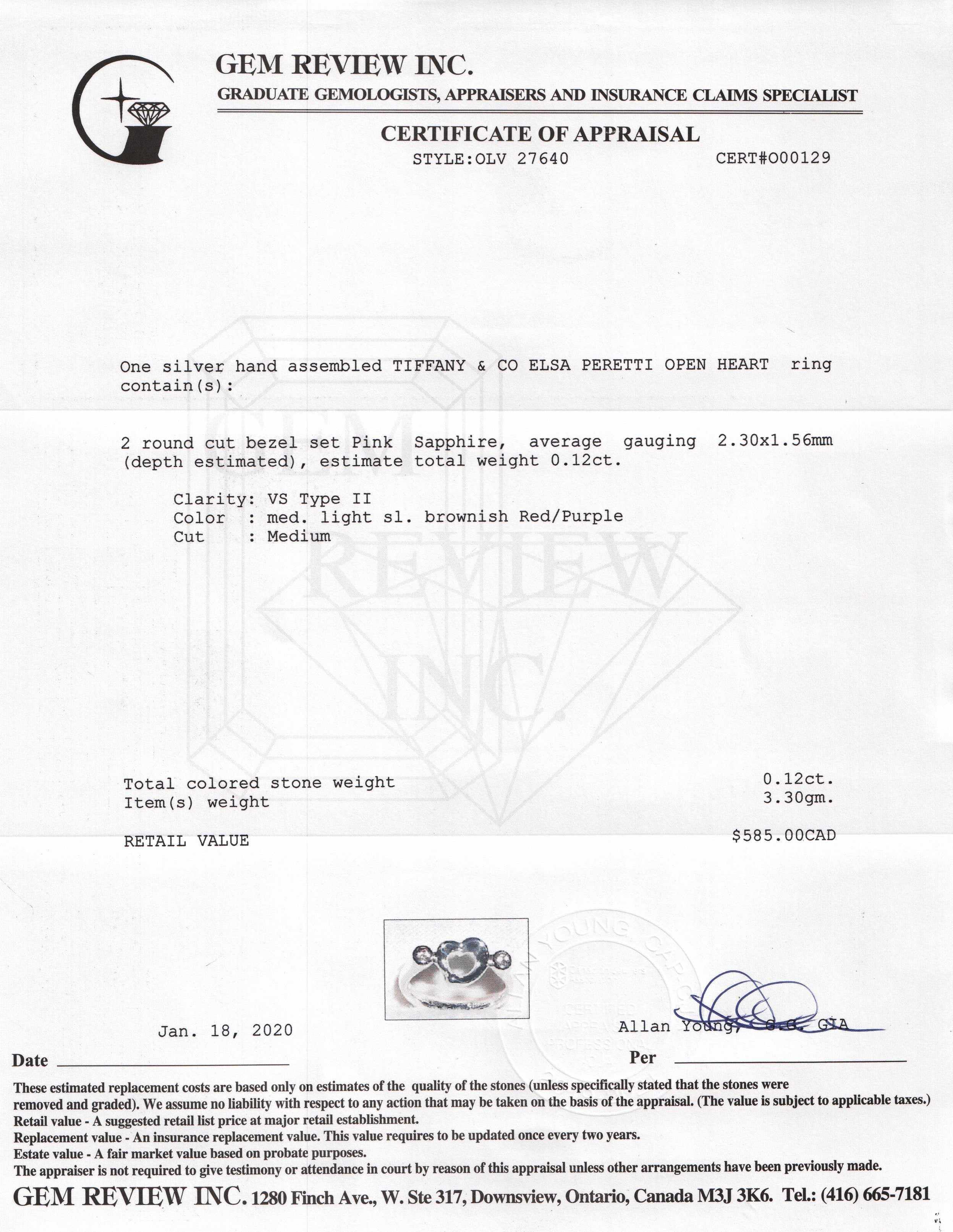 Tiffany & Co. Elsa Peretti Pink Sapphire Open Heart Ring