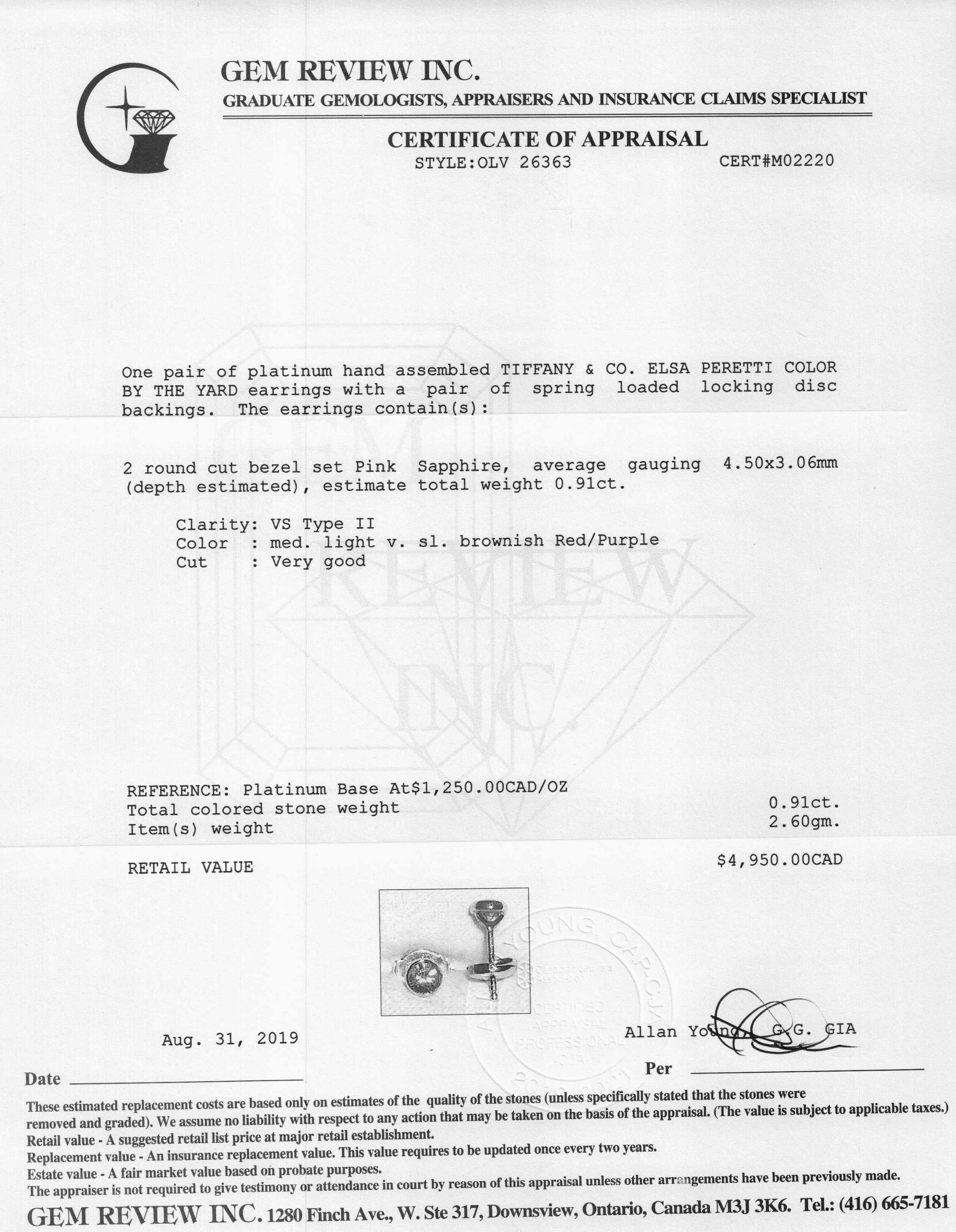 Elsa Peretti Platinum Colour by the Yard Pink Sapphire Earrings
