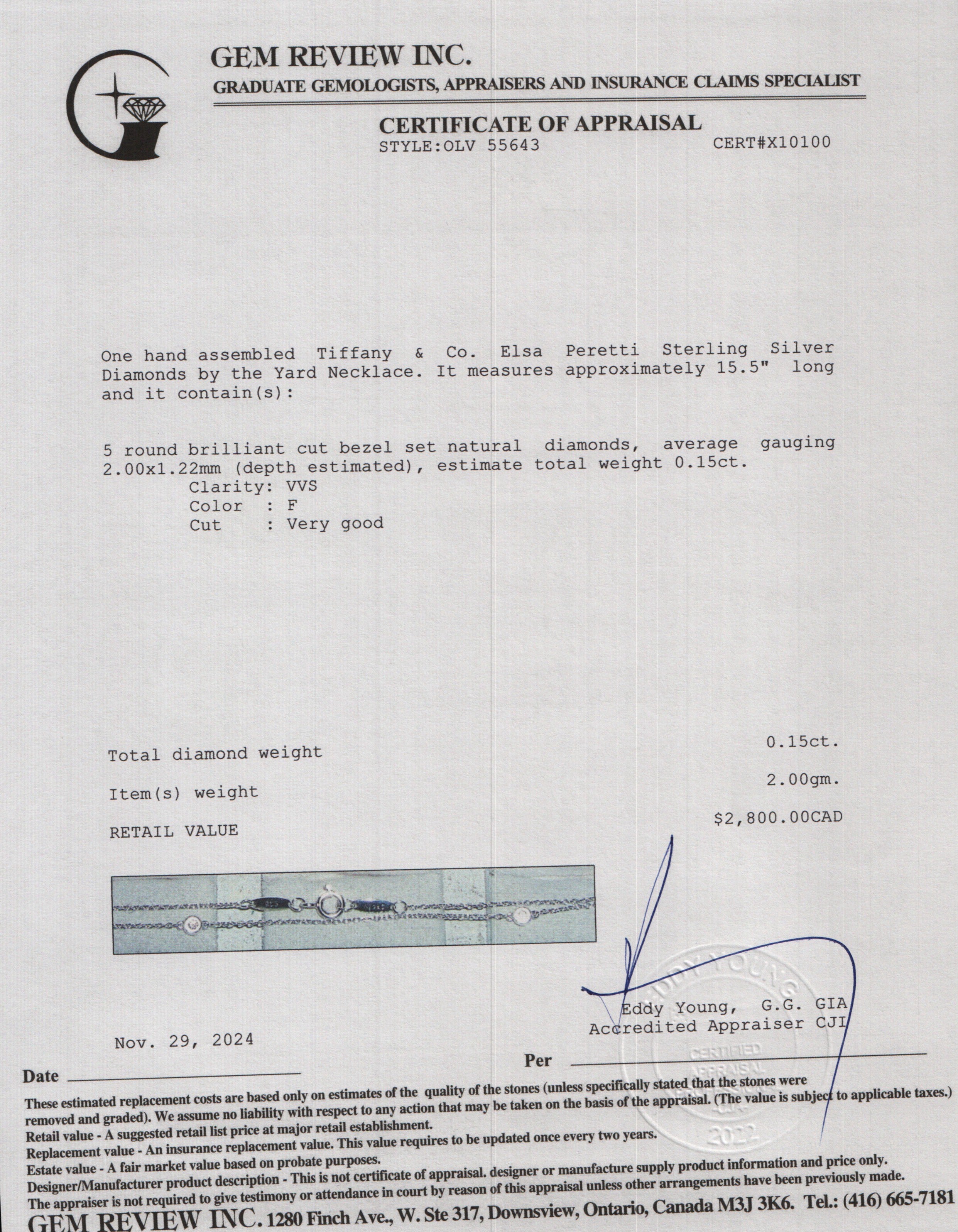Elsa Peretti Sterling Silver 0.15 ct. Diamonds by the Yard Necklace w/ Box