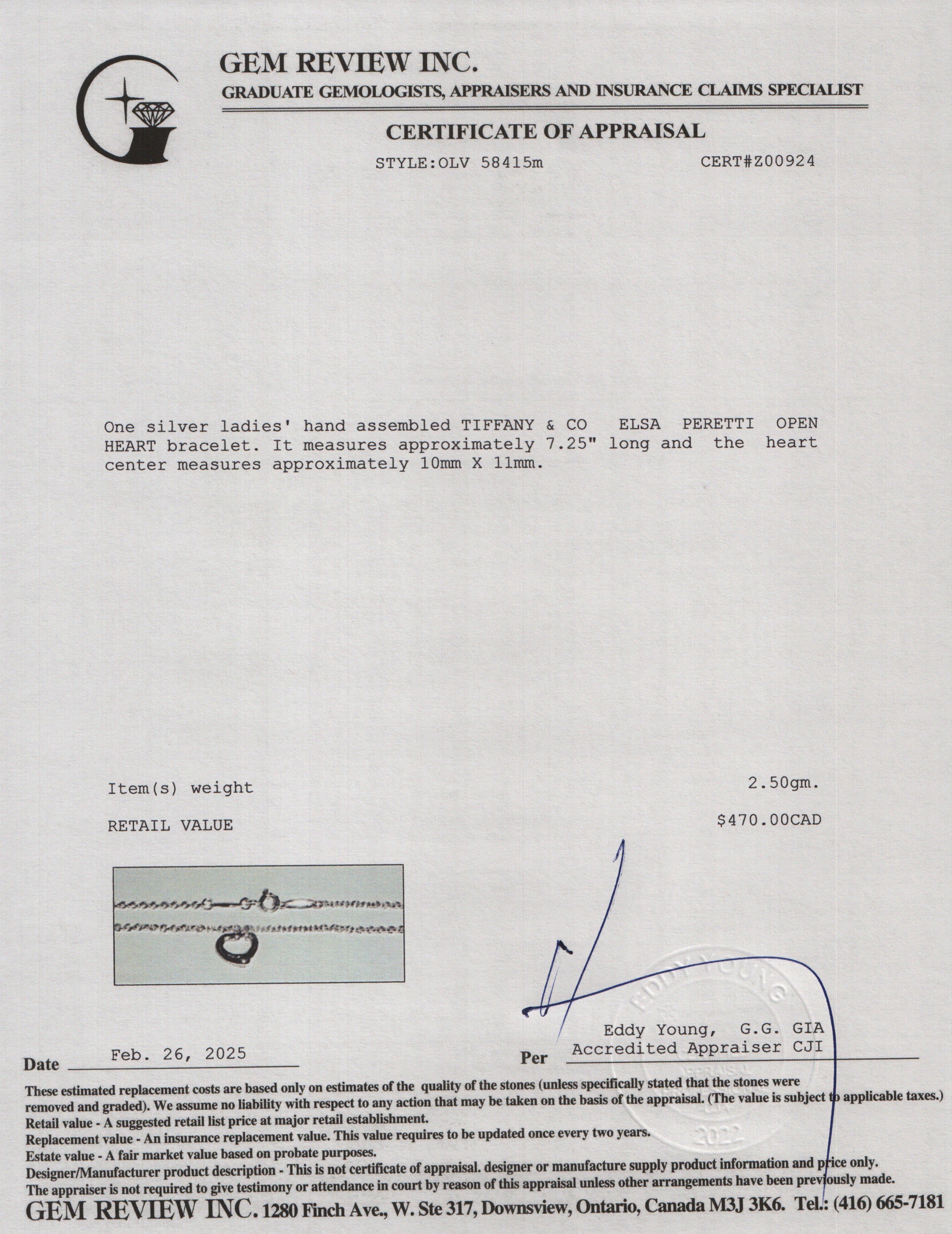 Elsa Peretti Sterling Silver 11 MM Open Heart Bracelet