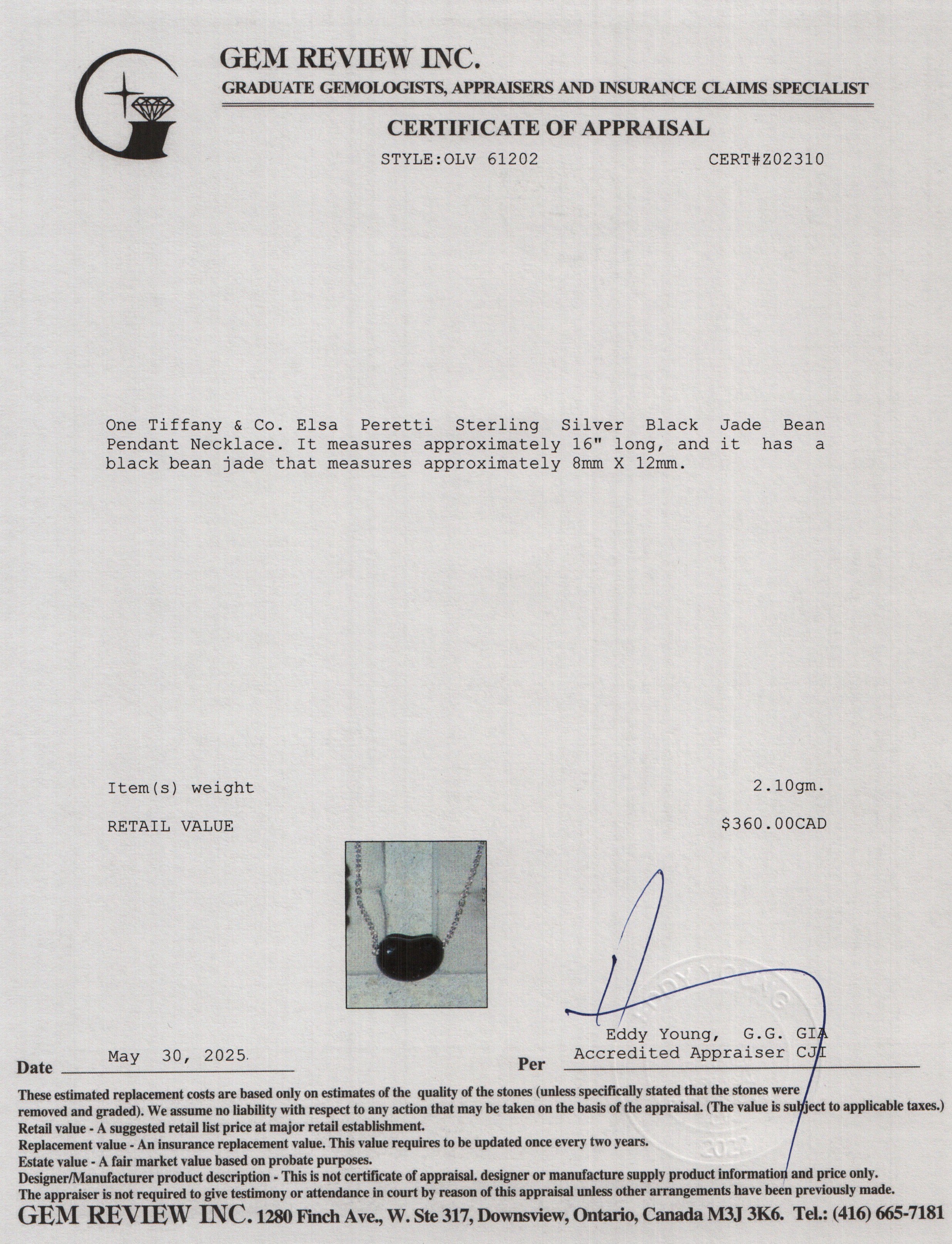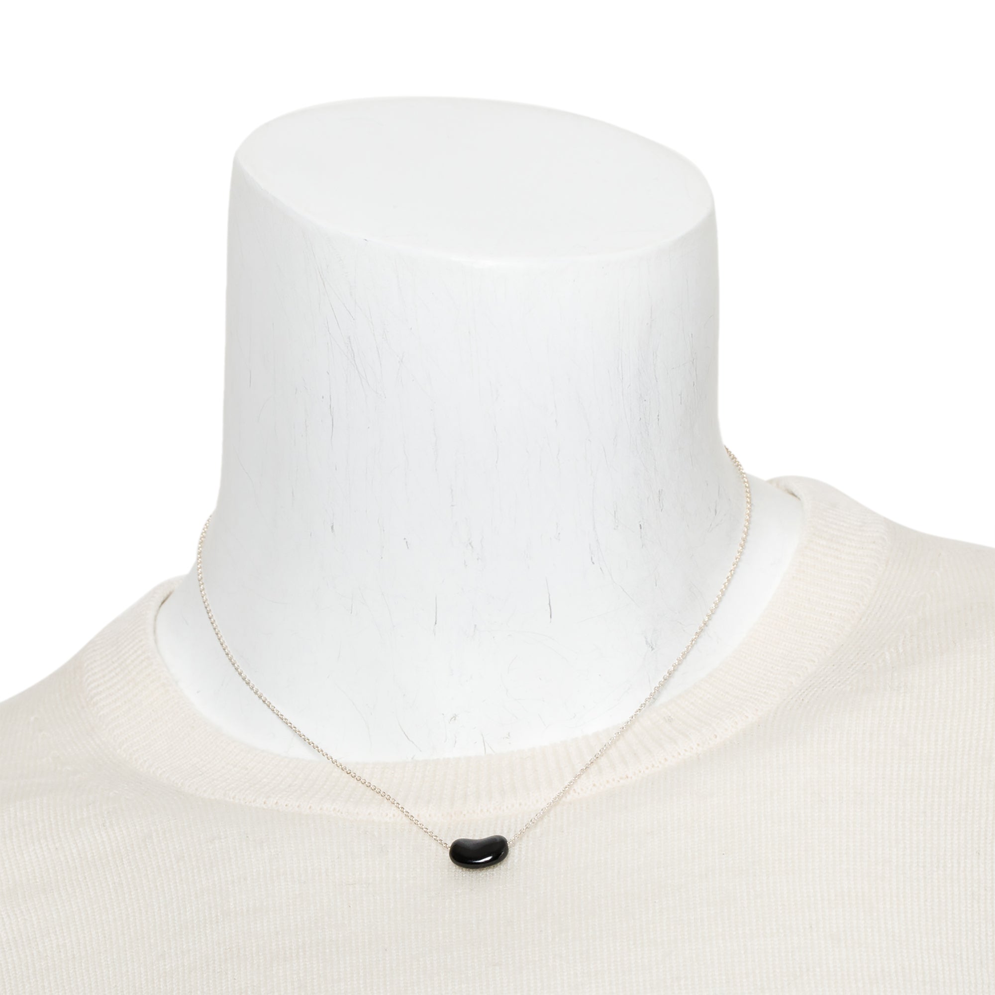 Elsa Peretti Sterling Silver 12 MM Black Jade Bean Pendant Necklace
