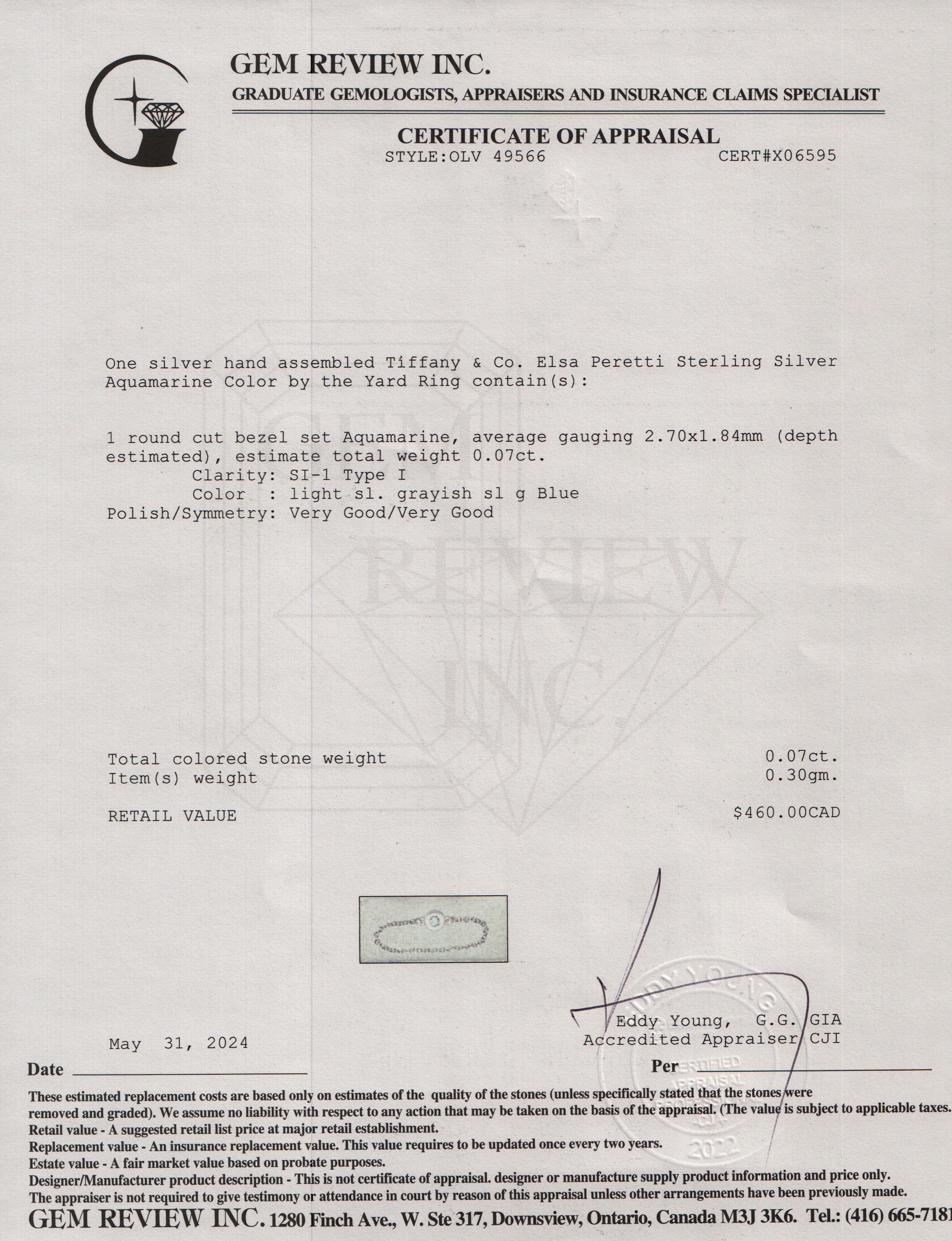 Elsa Peretti Sterling Silver Aquamarine Color by the Yard Ring, Size 6.5