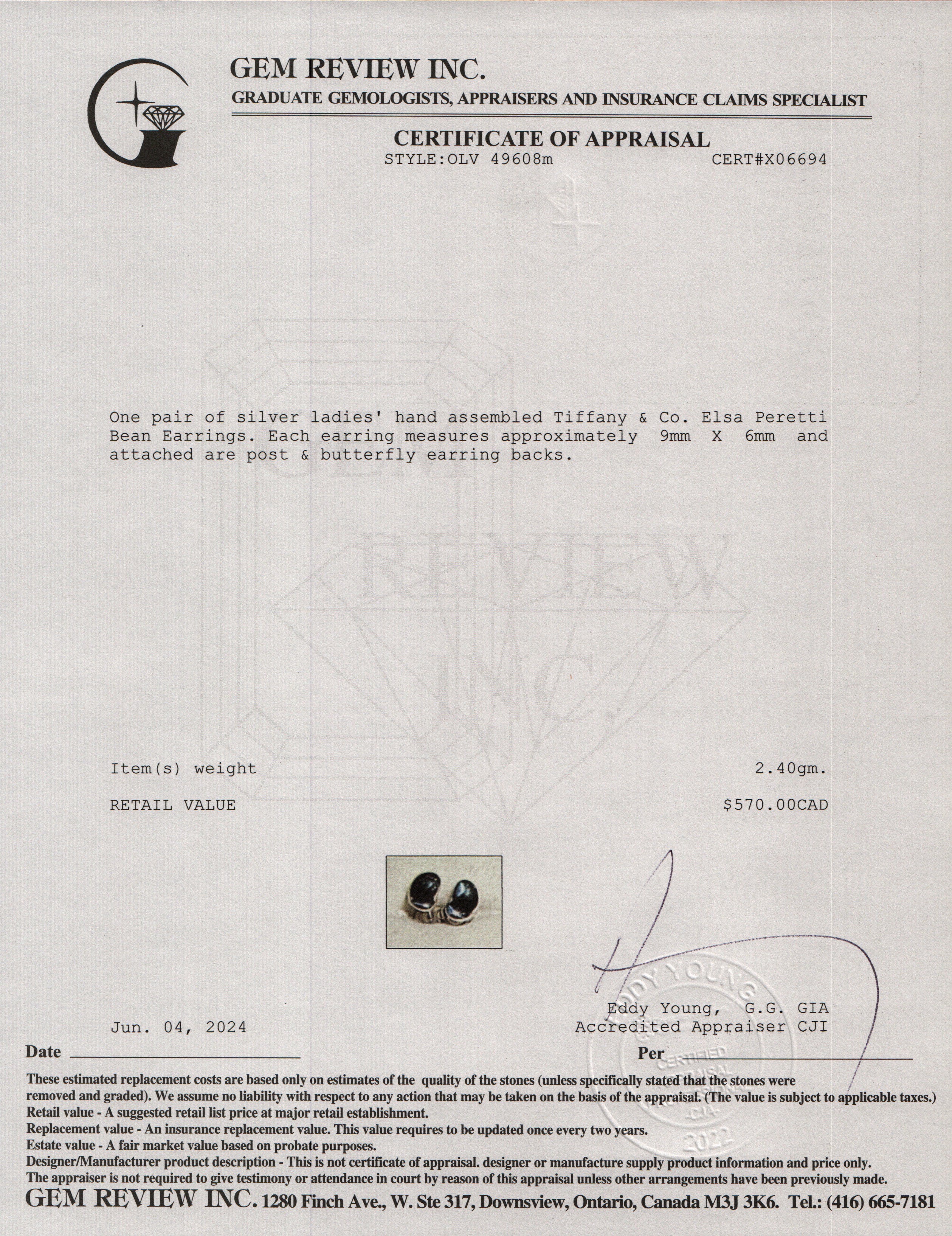 Elsa Peretti Sterling Silver Bean Earrings, 9 MM