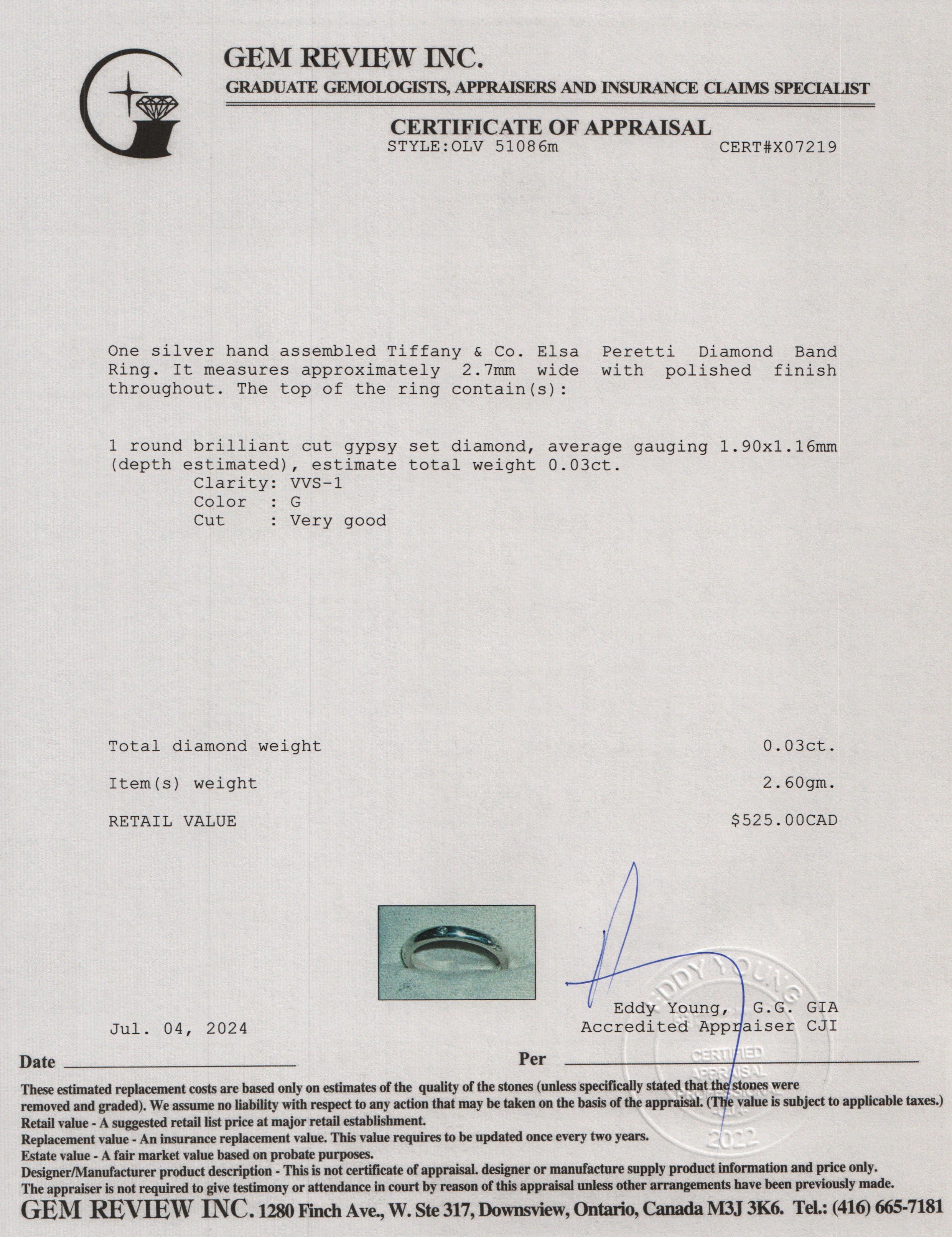 Elsa Peretti Sterling Silver Diamond Band Ring, Size 6