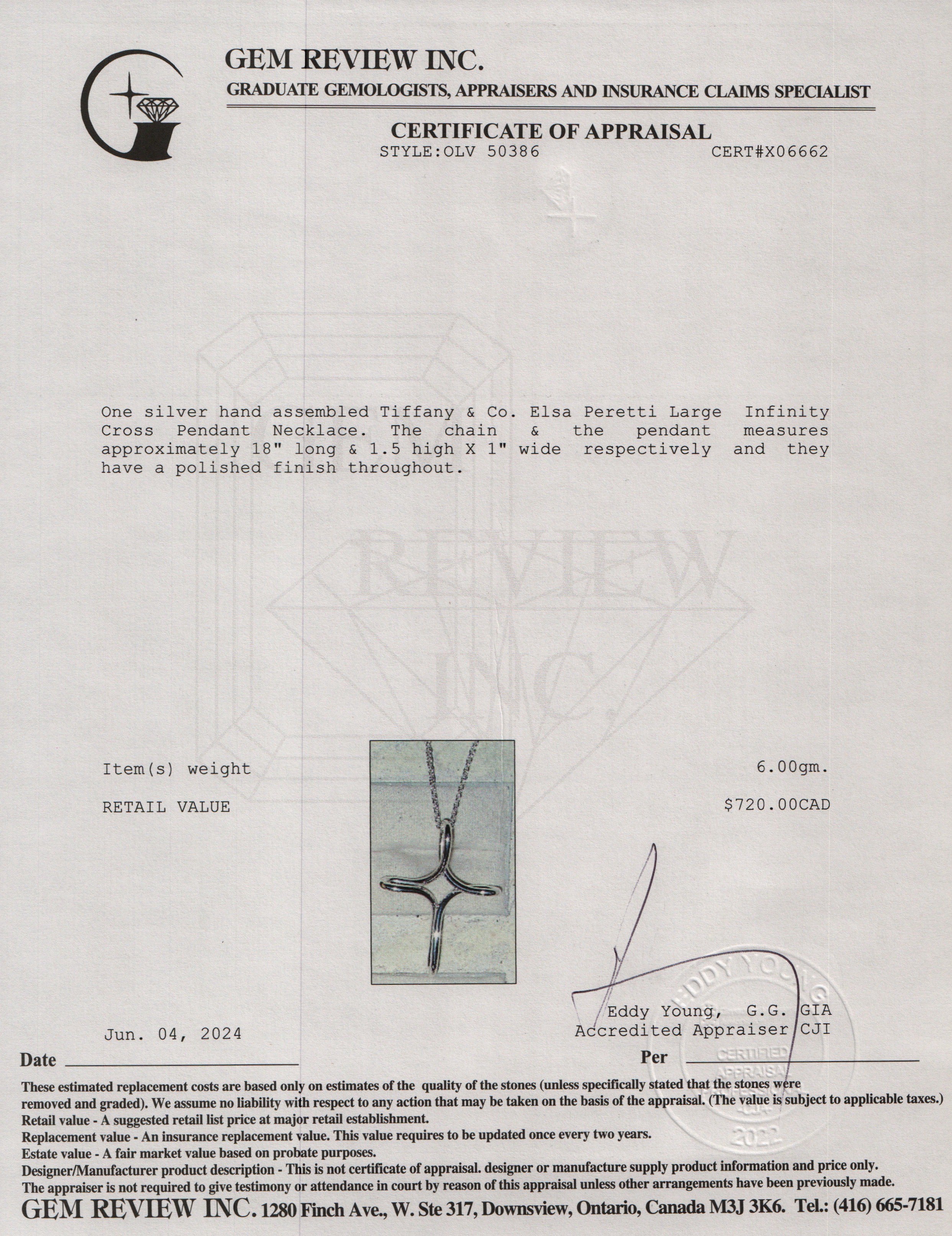Elsa Peretti Sterling Silver Large Infinity Cross Pendant Necklace