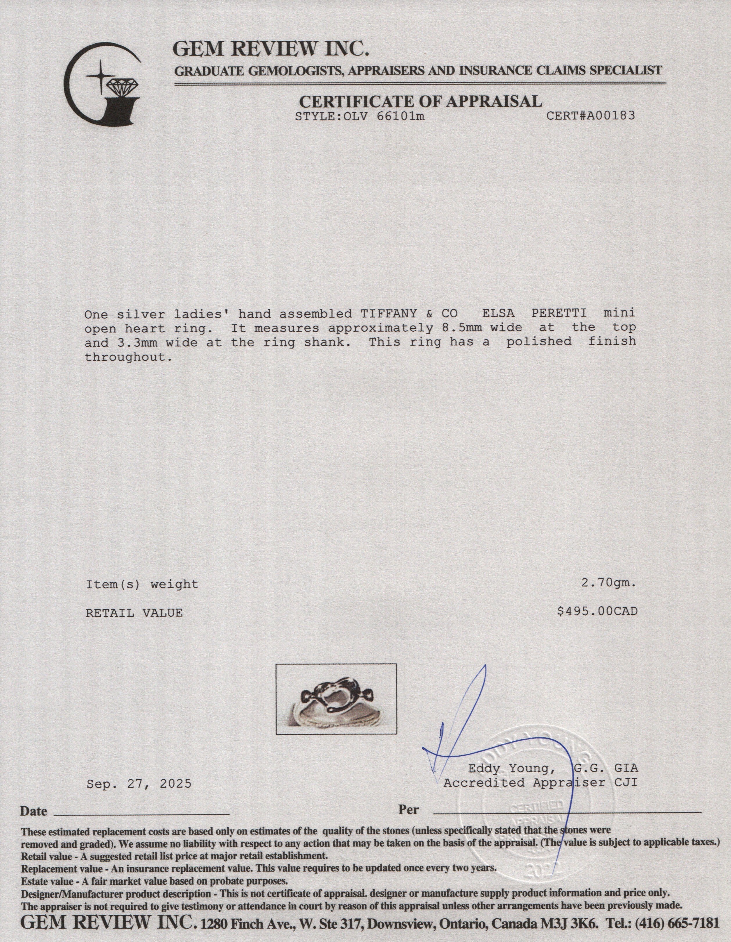 Elsa Peretti Sterling Silver Mini Open Heart Ring, Size 5.75