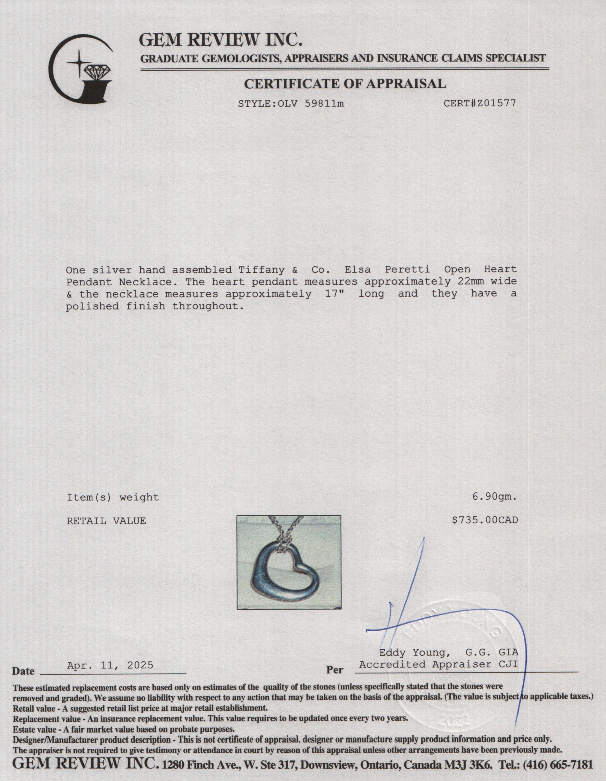 Elsa Peretti Sterling Silver Open Heart Pendant Necklace, 22 MM