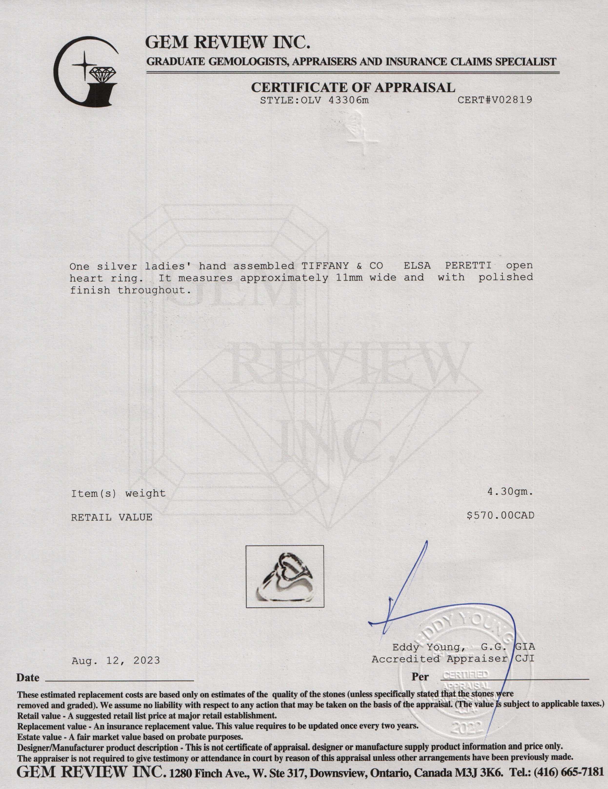 - Signature/Hallmarks: T & Co. Peretti 925