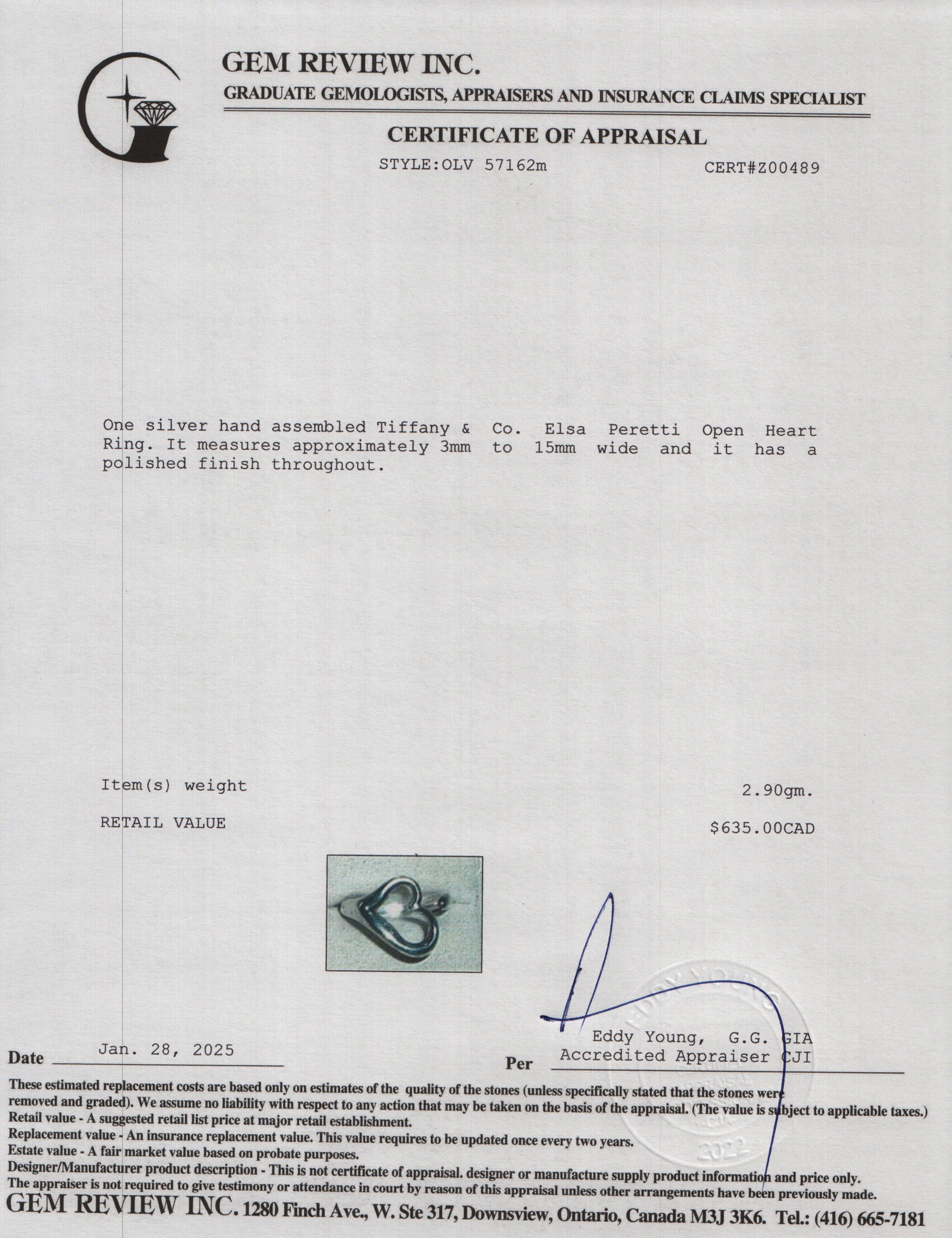 Elsa Peretti Sterling Silver Open Heart Ring, Size 5.5