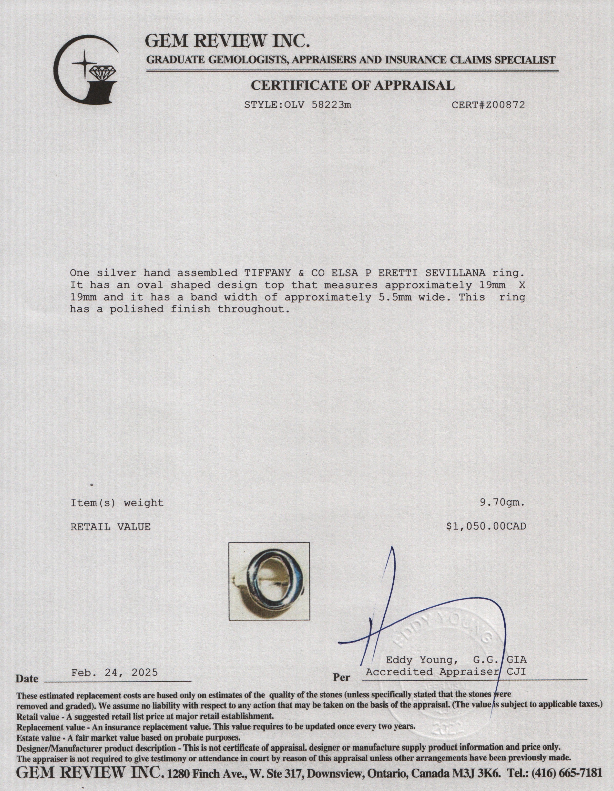 Elsa Peretti Sterling Silver Sevillana Ring, Size 7