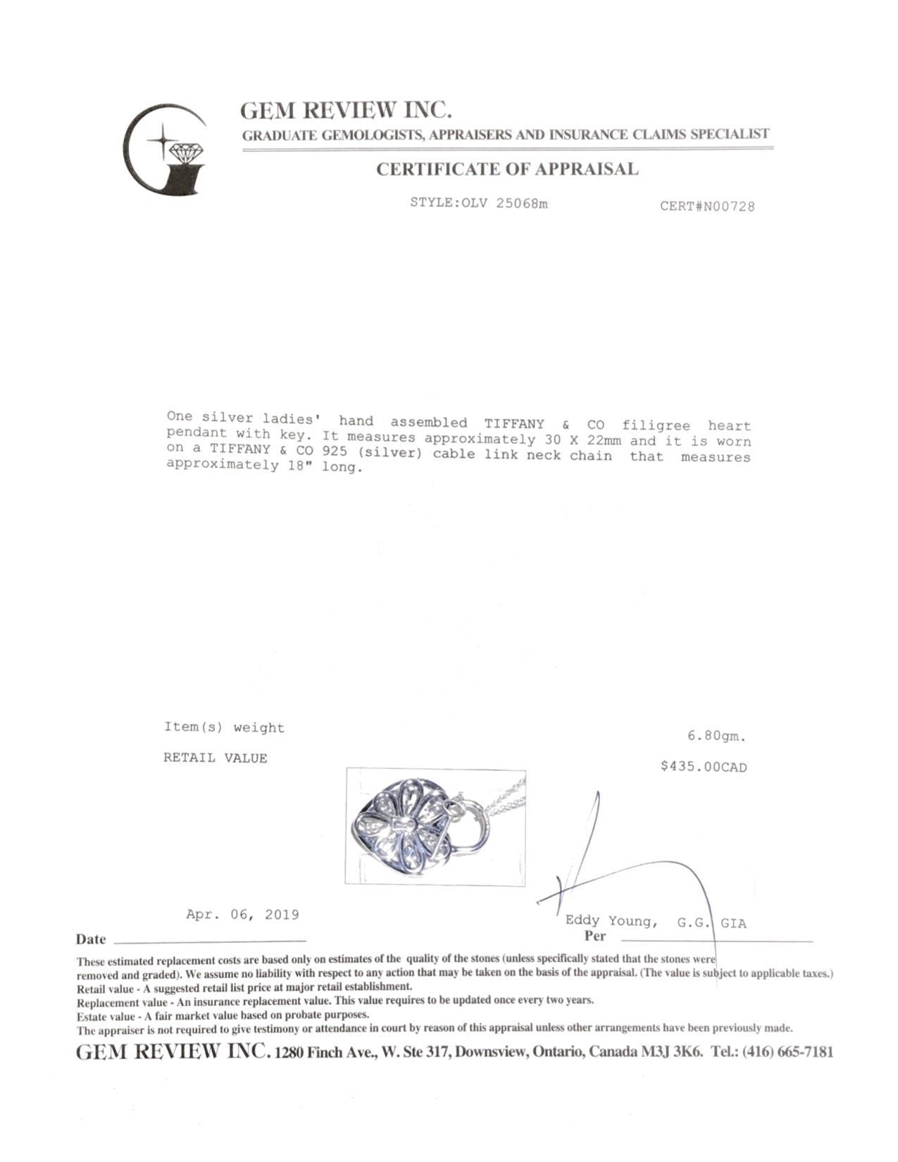 Tiffany & Co. Filigree Heart Tag with Key Pendant Necklace