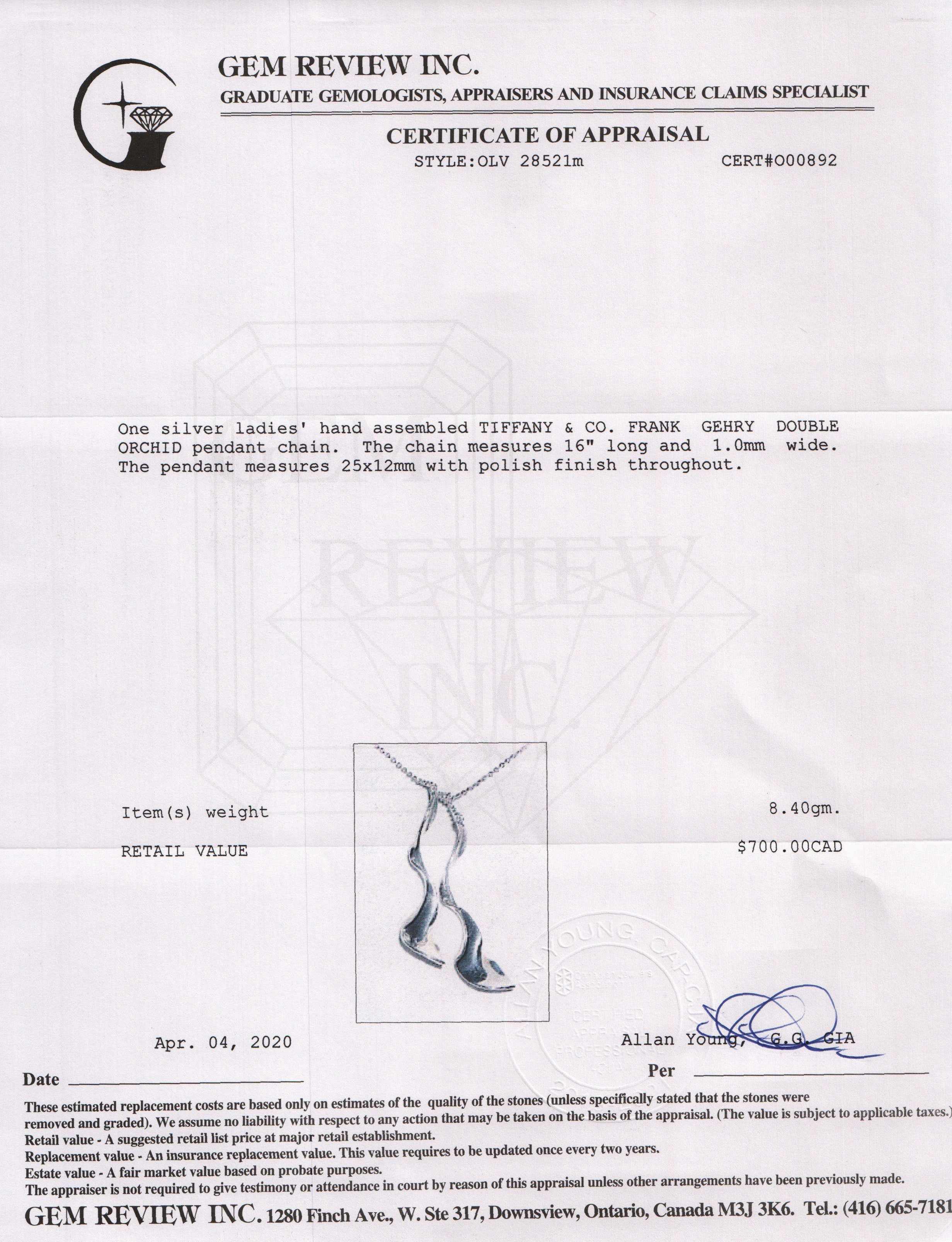 - Signature/Hallmarks : Tiffany & Co. Gehry AG925