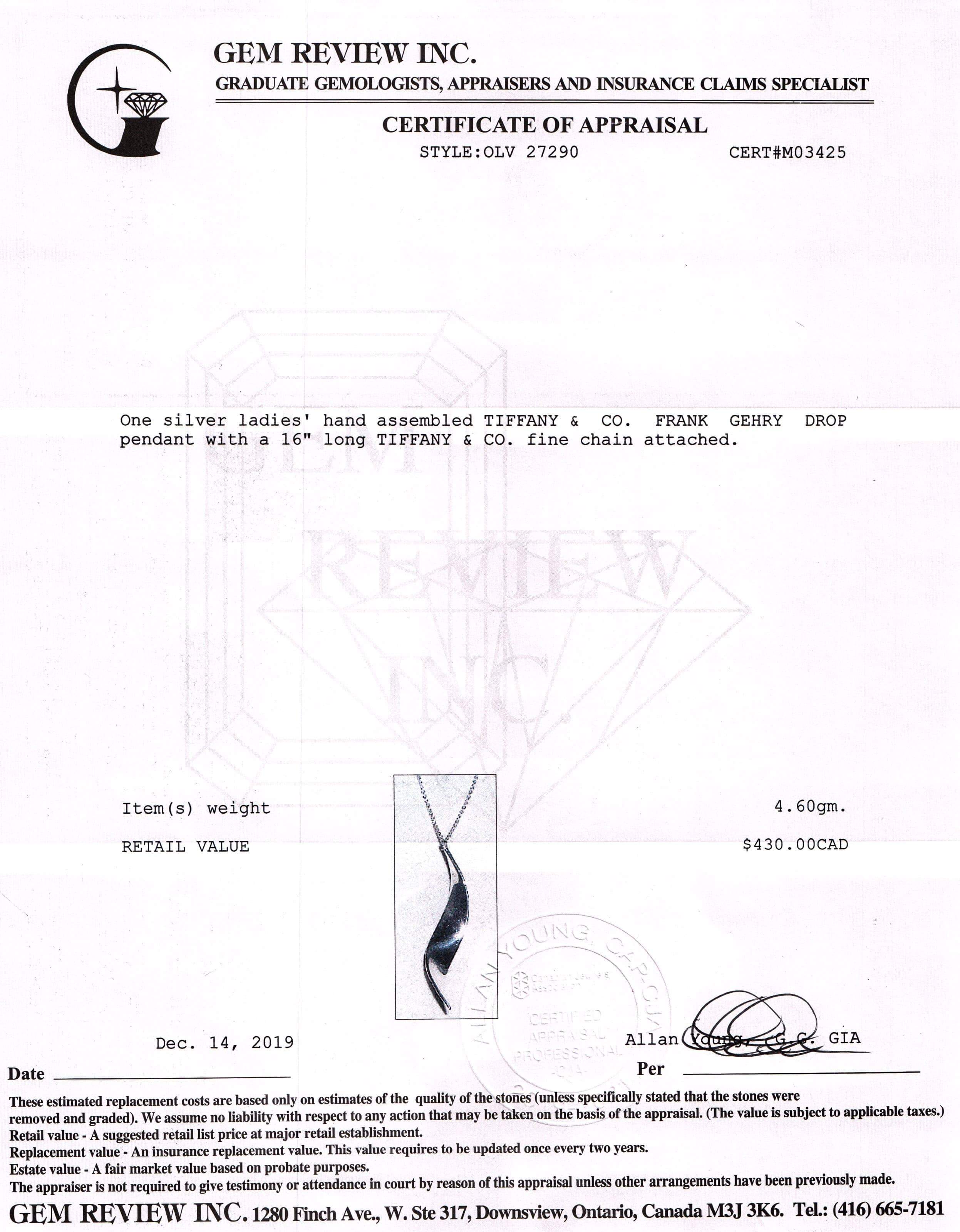 - Signature/Hallmarks : Tiffany & Co. Gehry AG925