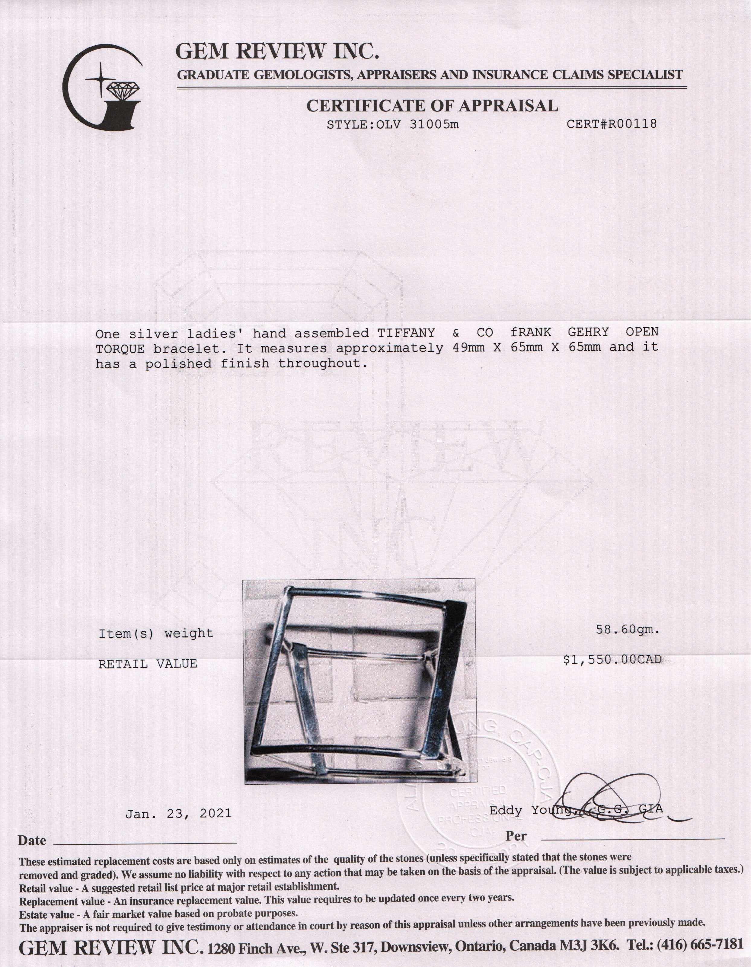 - Signature/Hallmarks: Tiffany & Co. Gehry 925
