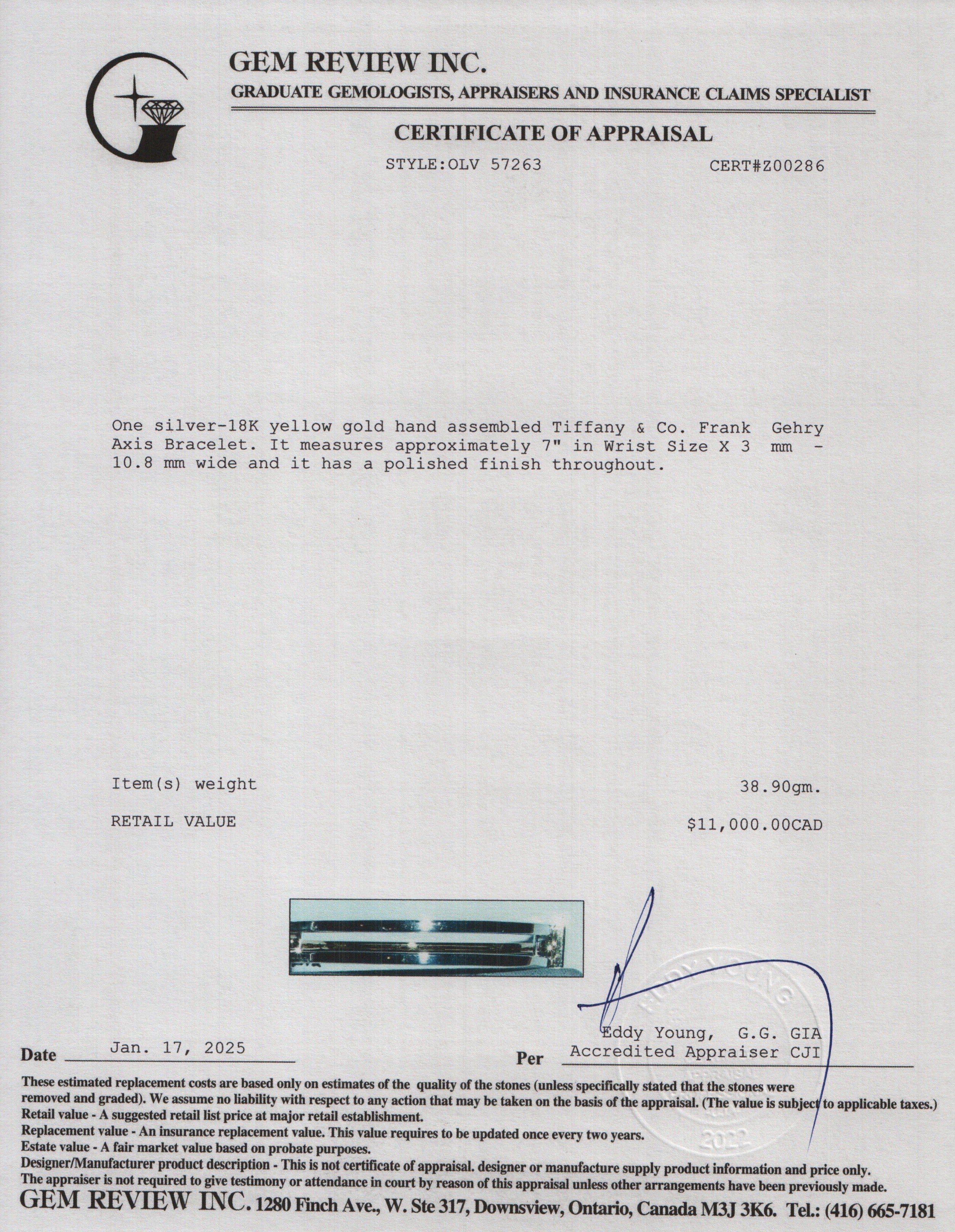 Frank Gehry Sterling Silver & 18k Yellow Gold Axis Bracelet w/ Box