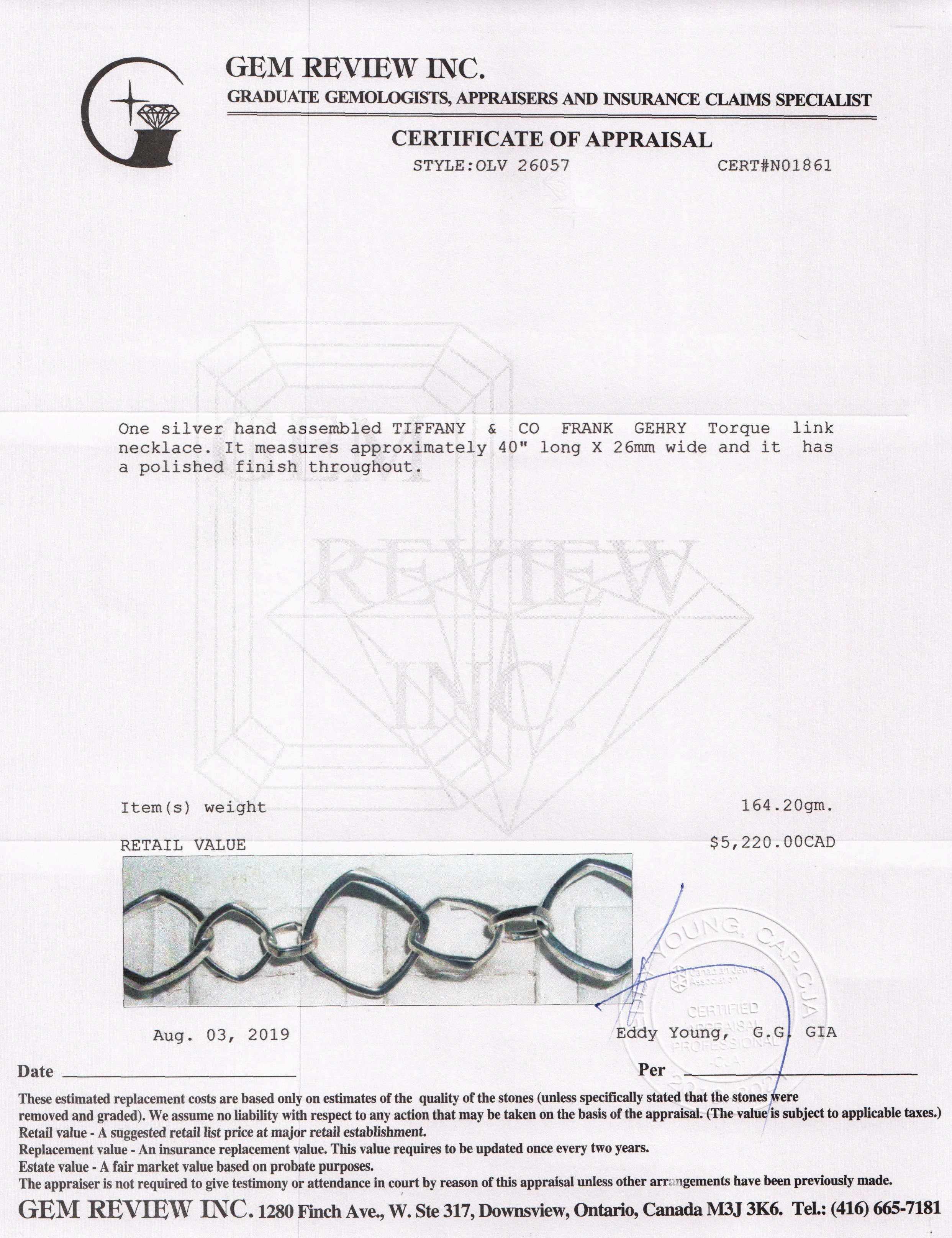 - Signature/Hallmarks: Tiffany & Co. Gehry 925