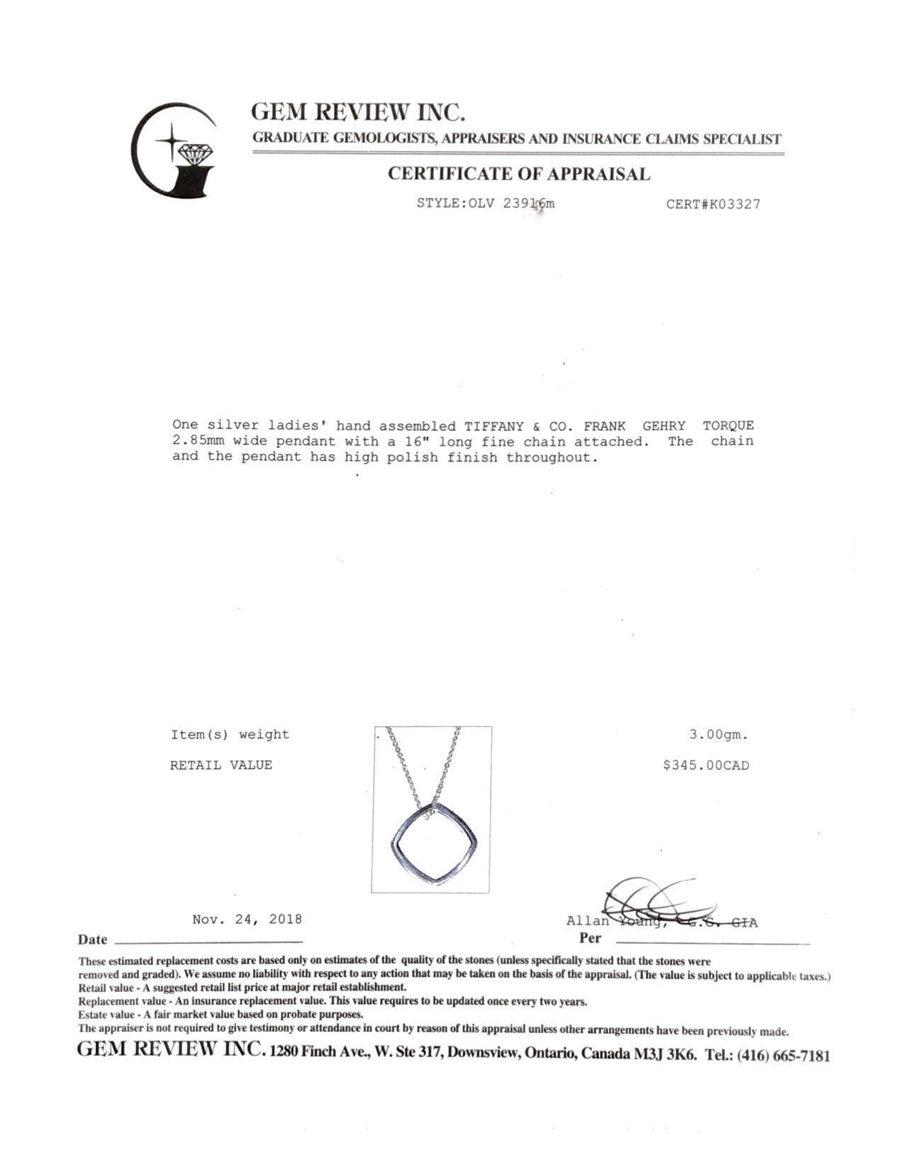 Tiffany & Co. Frank Gehry Torque Pendant Necklace