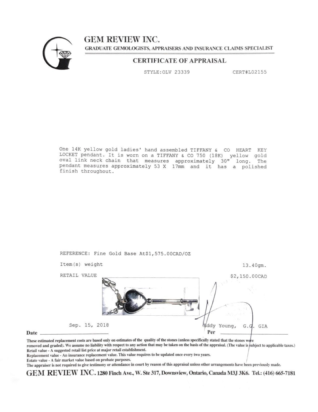Tiffany & Co. Heart Key Locket Pendant Necklace