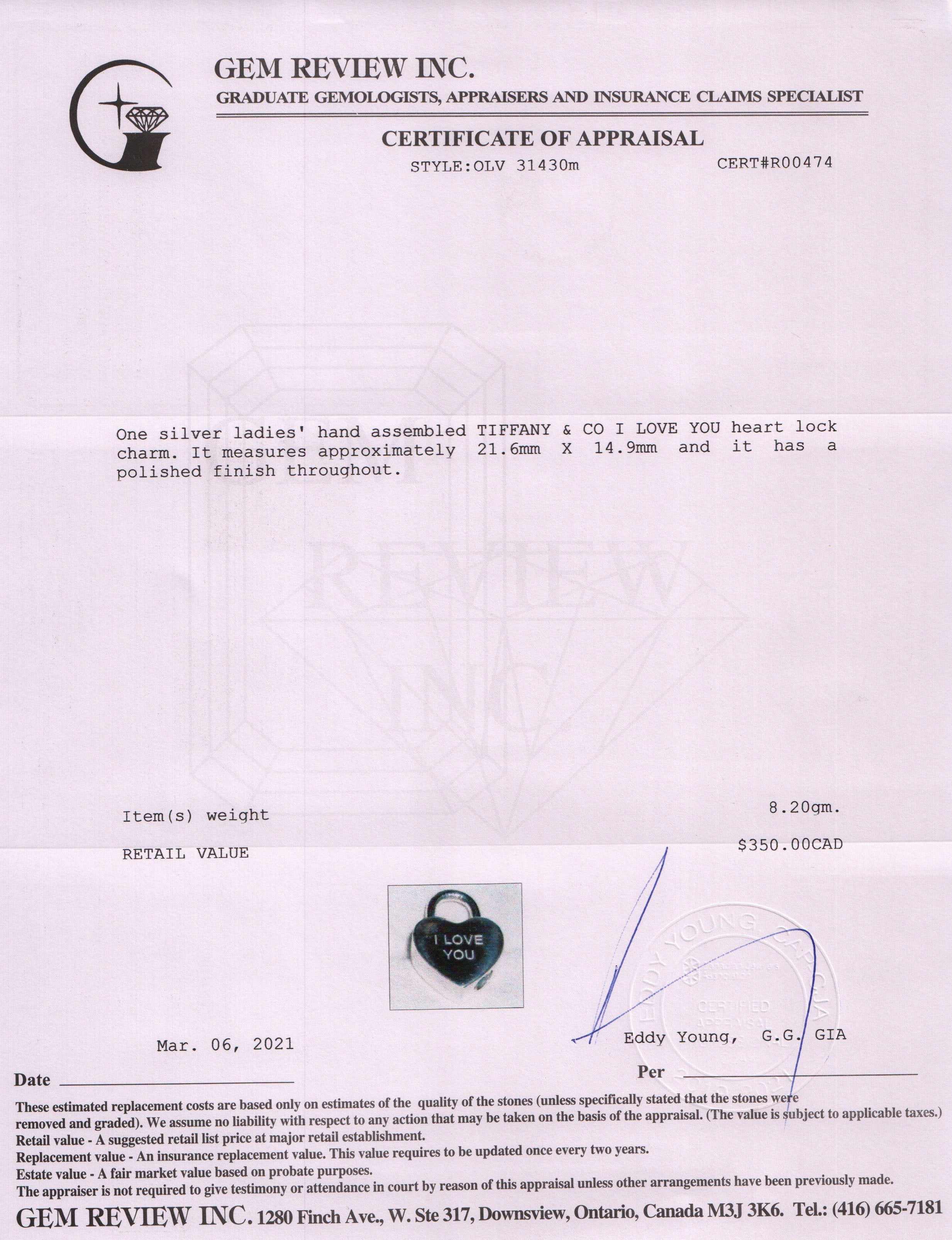 Tiffany & Co. 'I Love You' Heart Lock Charm