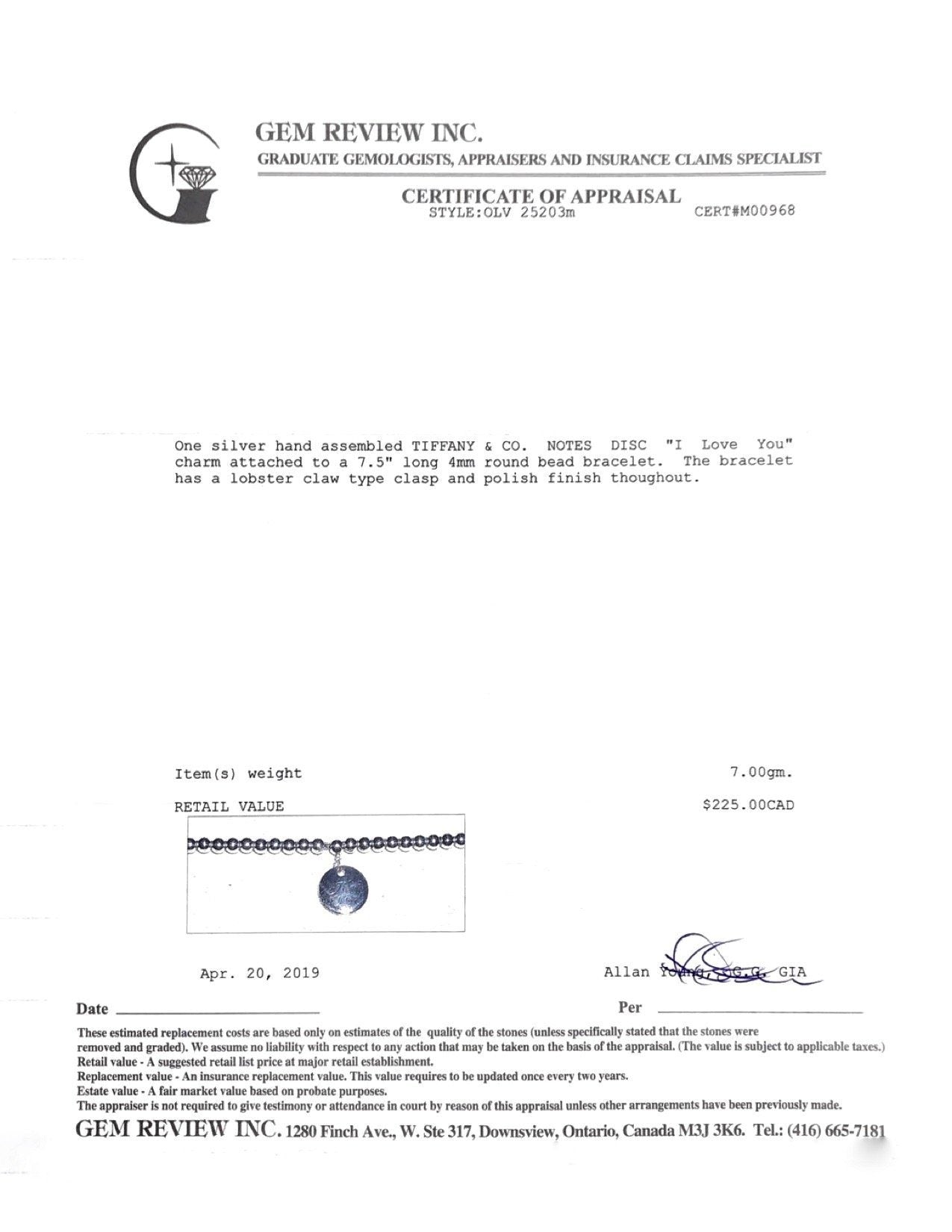 Tiffany & Co. "I Love You" Mini Round Tag Bead Bracelet