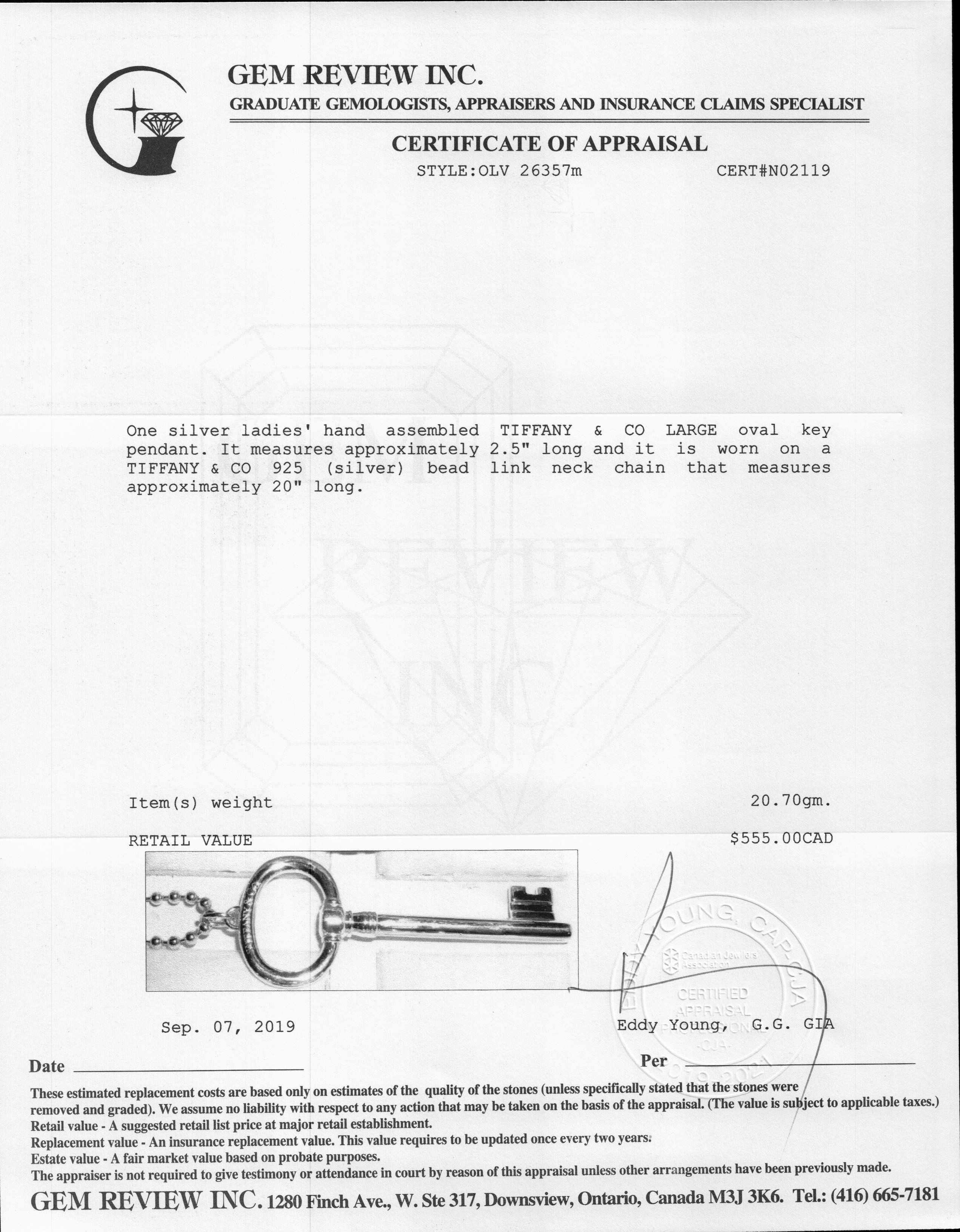 Tiffany & Co. Large Oval Key Pendant Necklace