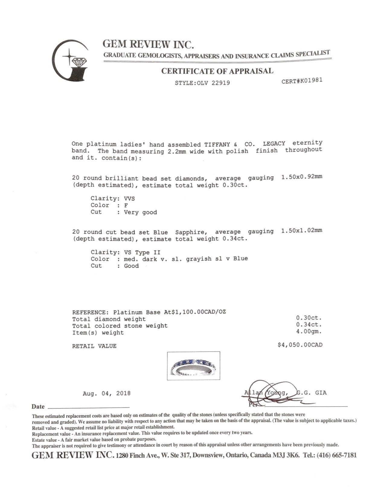 Tiffany & Co. Legacy Collection Diamond and Sapphire Eternity Band