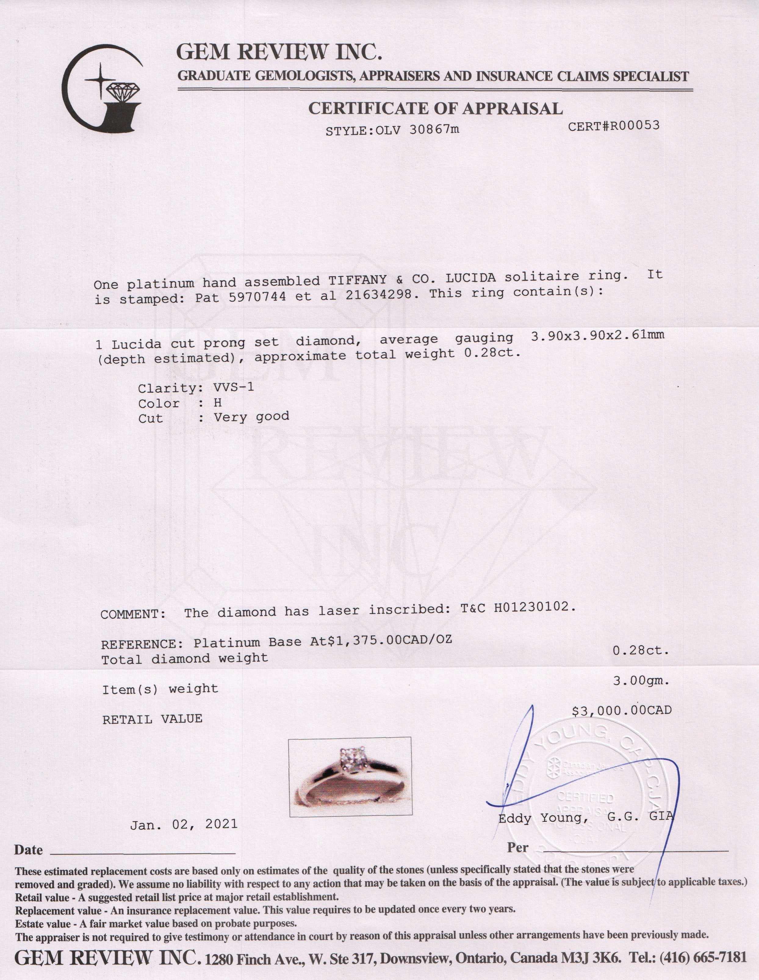 - Signature/Hallmarks: 1995 Tiffany & Co. PT950 Lucida