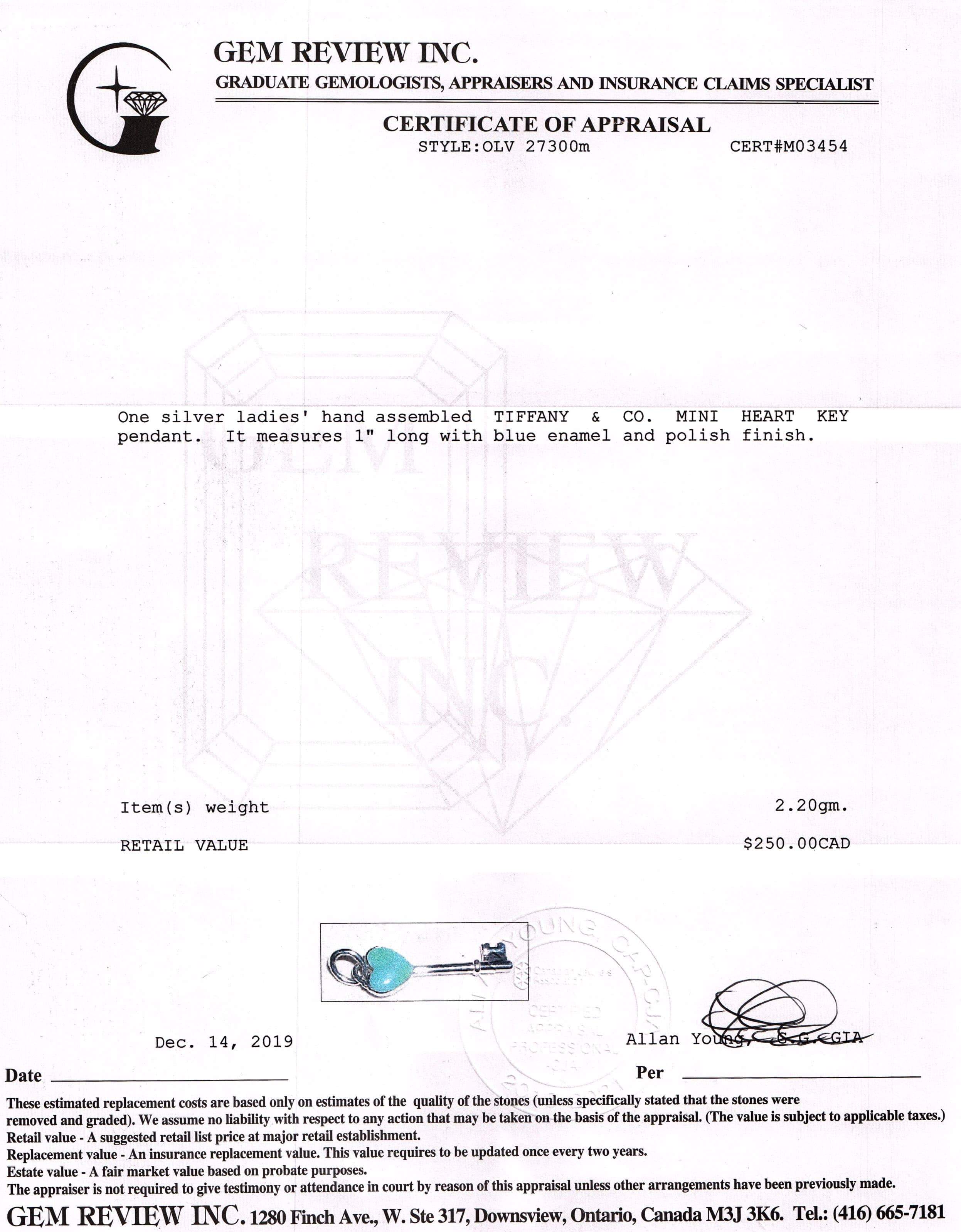 Tiffany & Co. Mini Heart Key Pendant with Blue Enamel