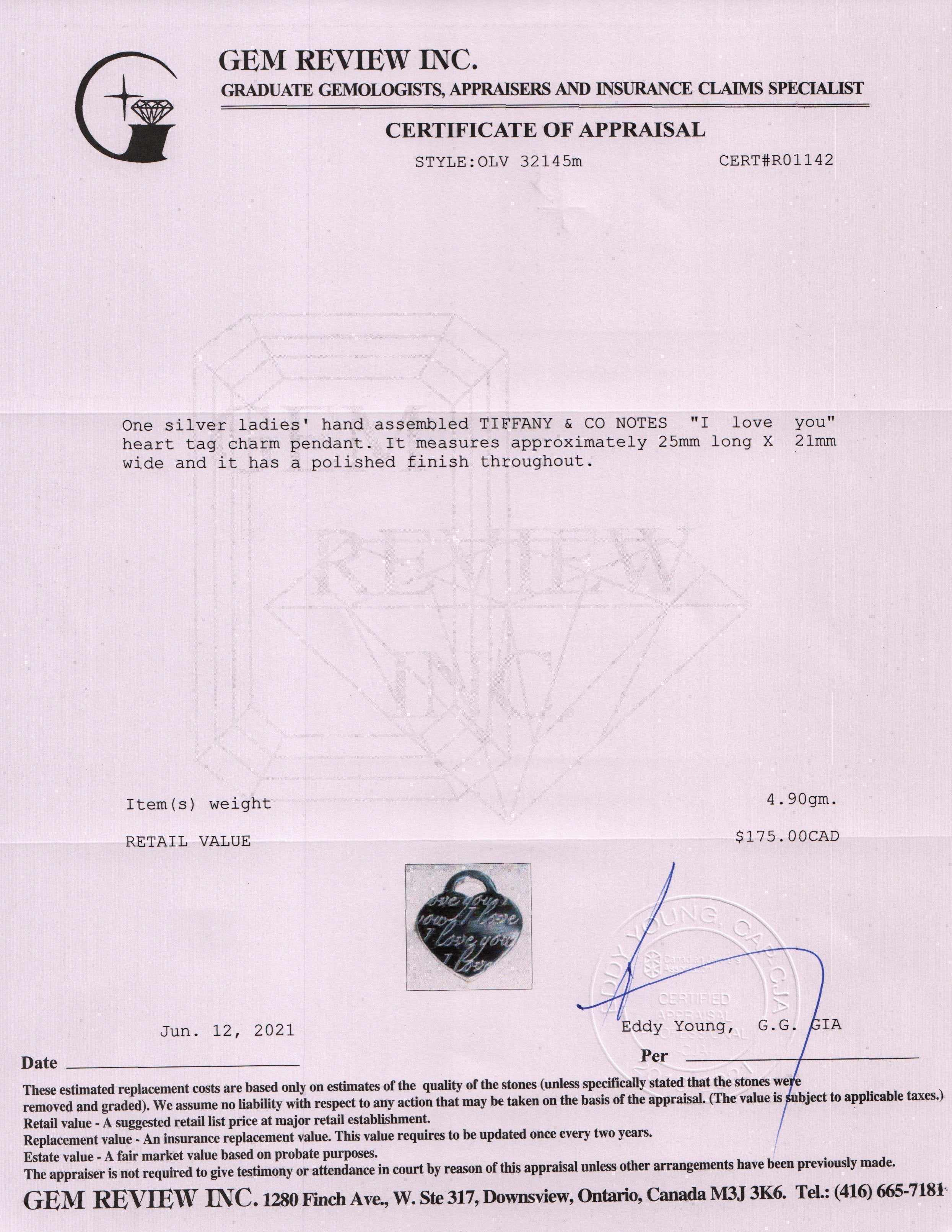 Tiffany & Co. Notes "I Love You' Heart Tag Charm