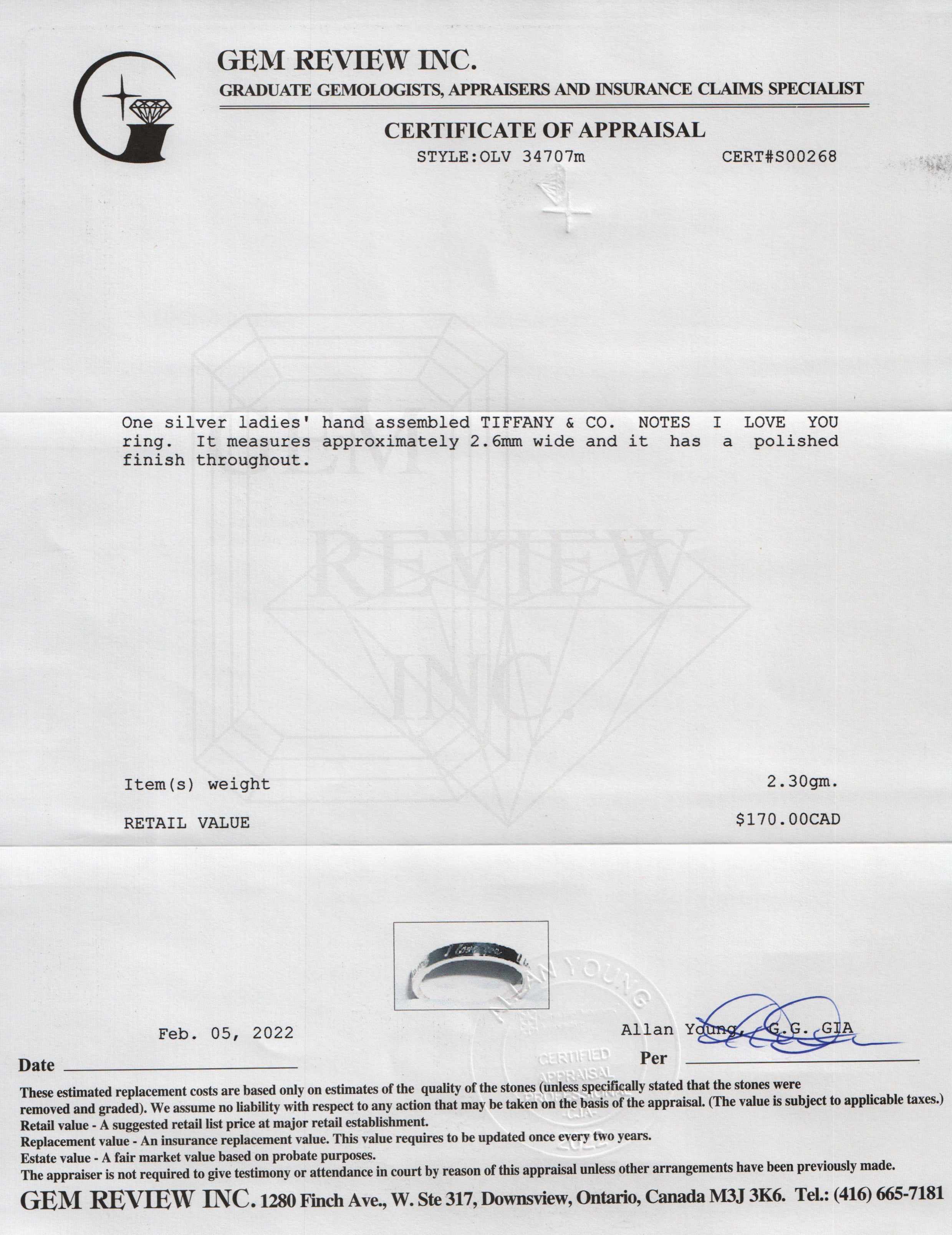 Tiffany & Co. Notes "I Love You" Ring