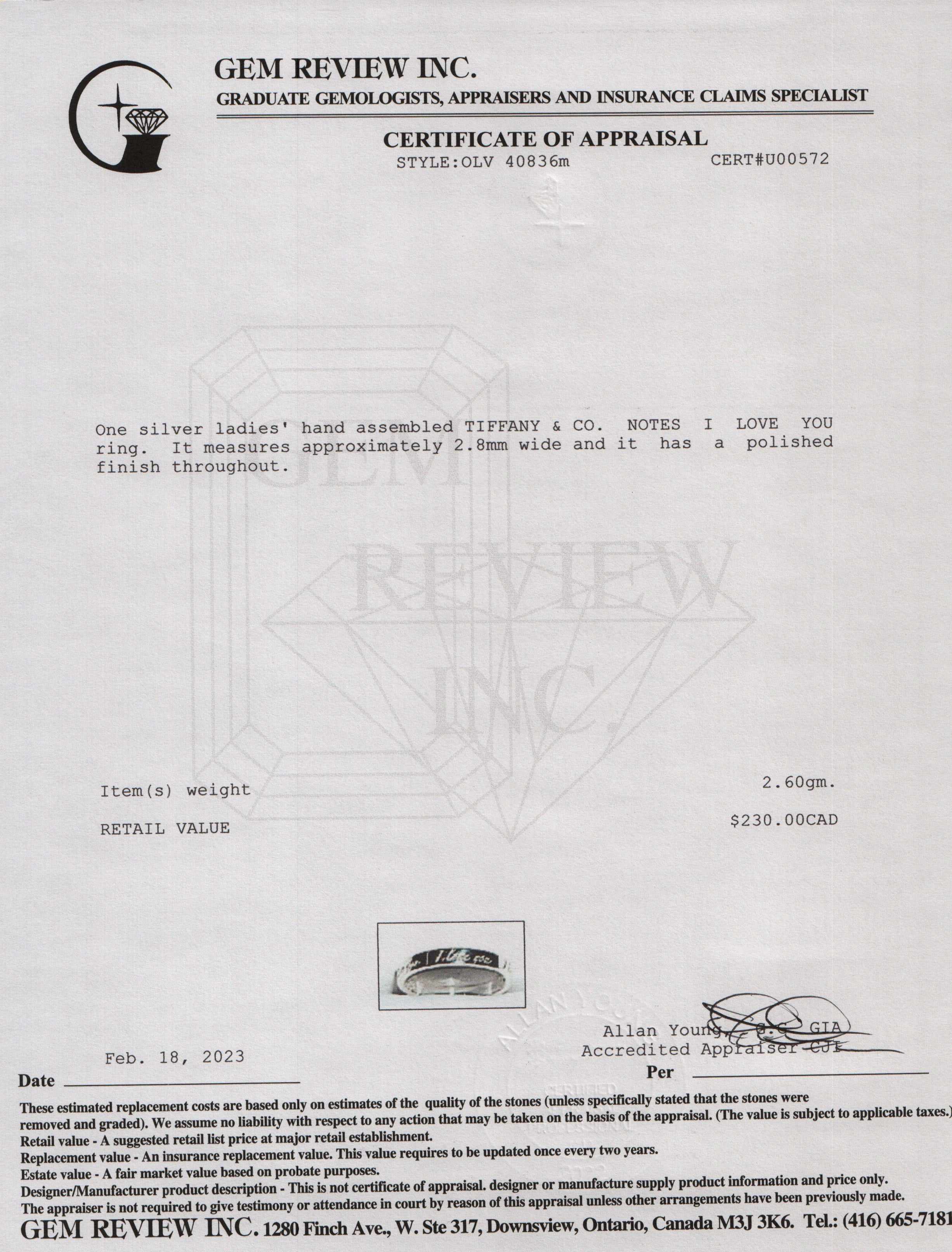 Tiffany & Co. Notes "I Love You" Ring