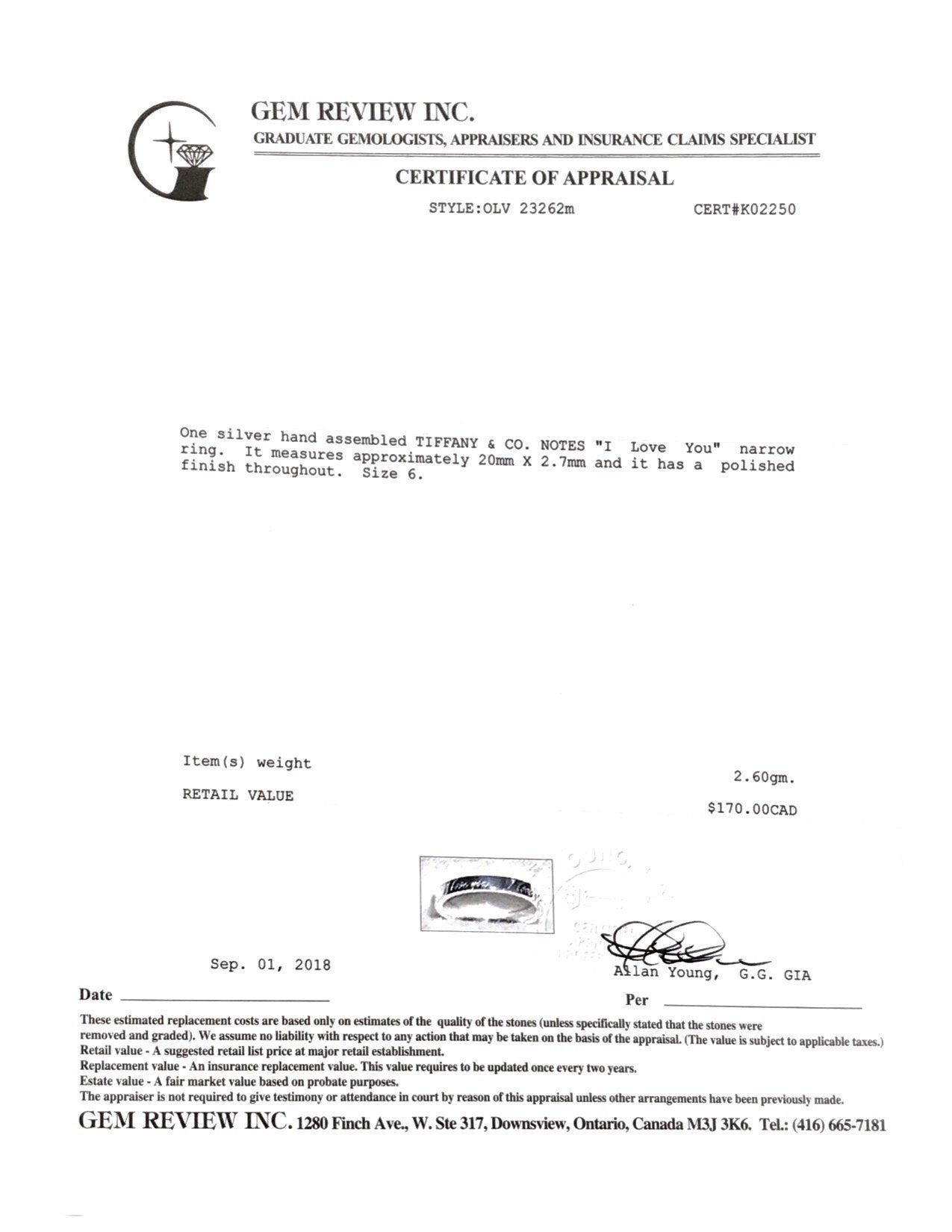 Tiffany & Co. Notes "I Love You" Ring