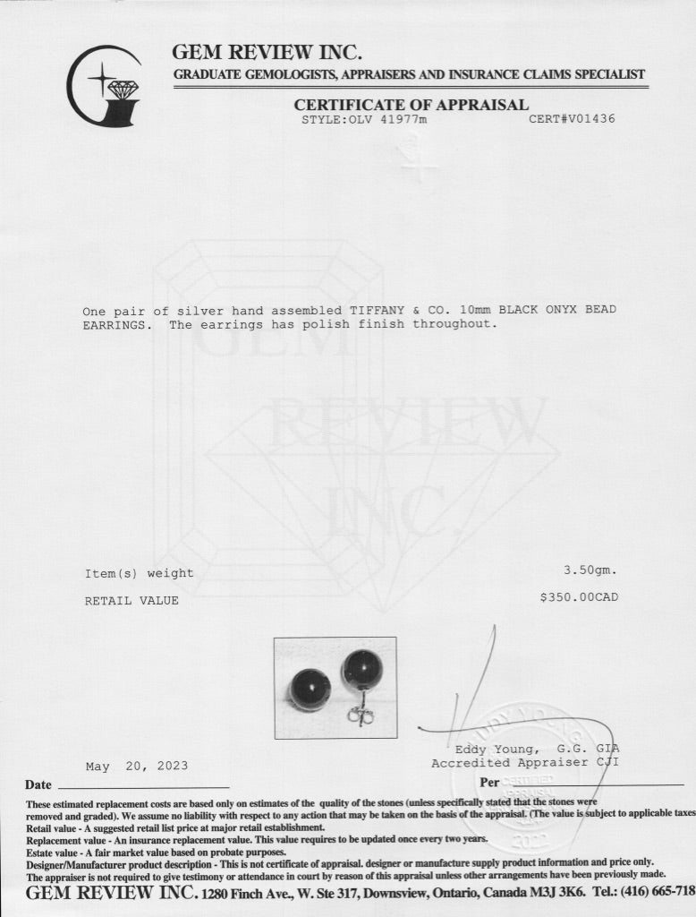 Tiffany & Co. Onyx Ball Stud Earrings, 10 mm