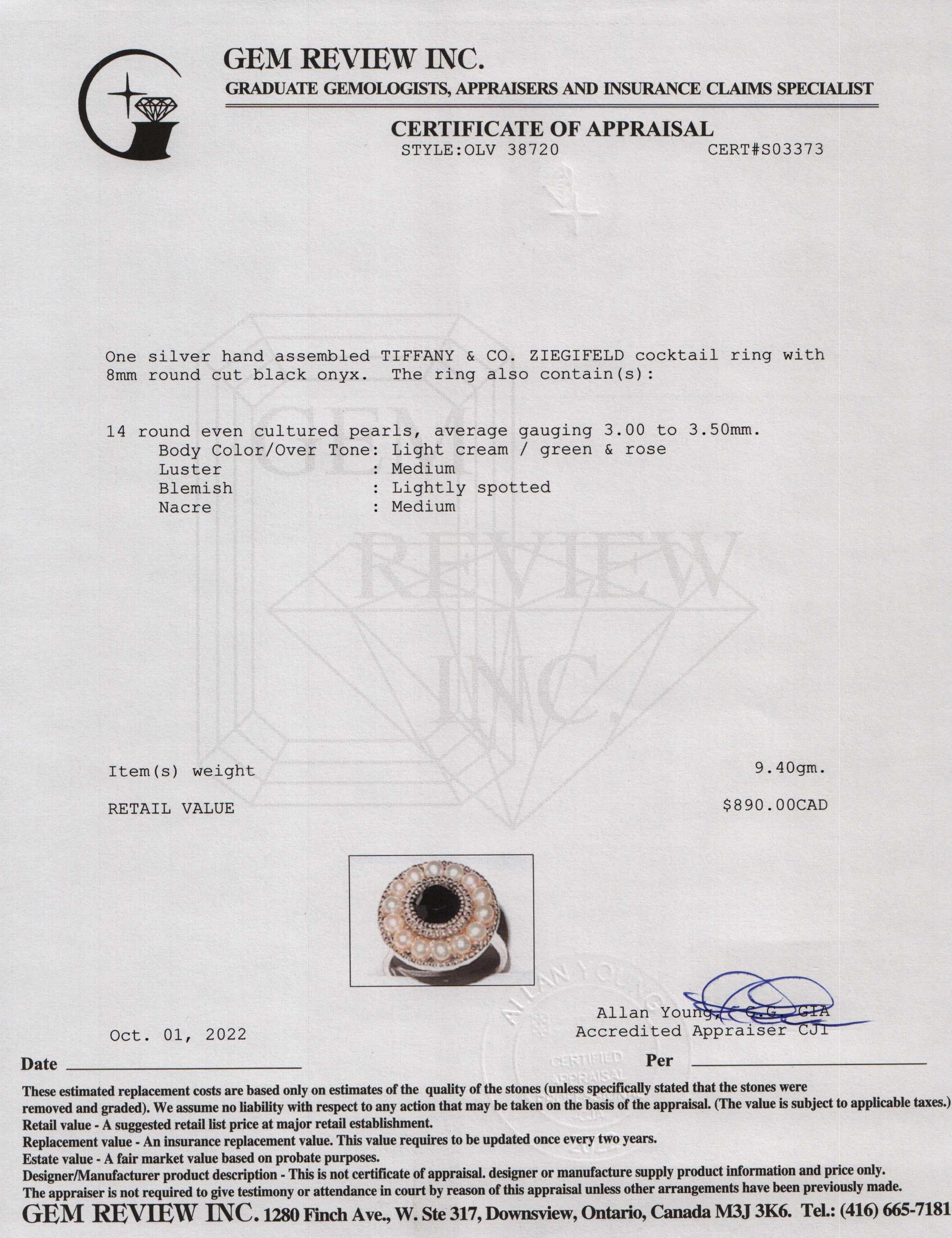 Tiffany & Co. Onyx & Pearl Ziegfeld Cocktail Ring