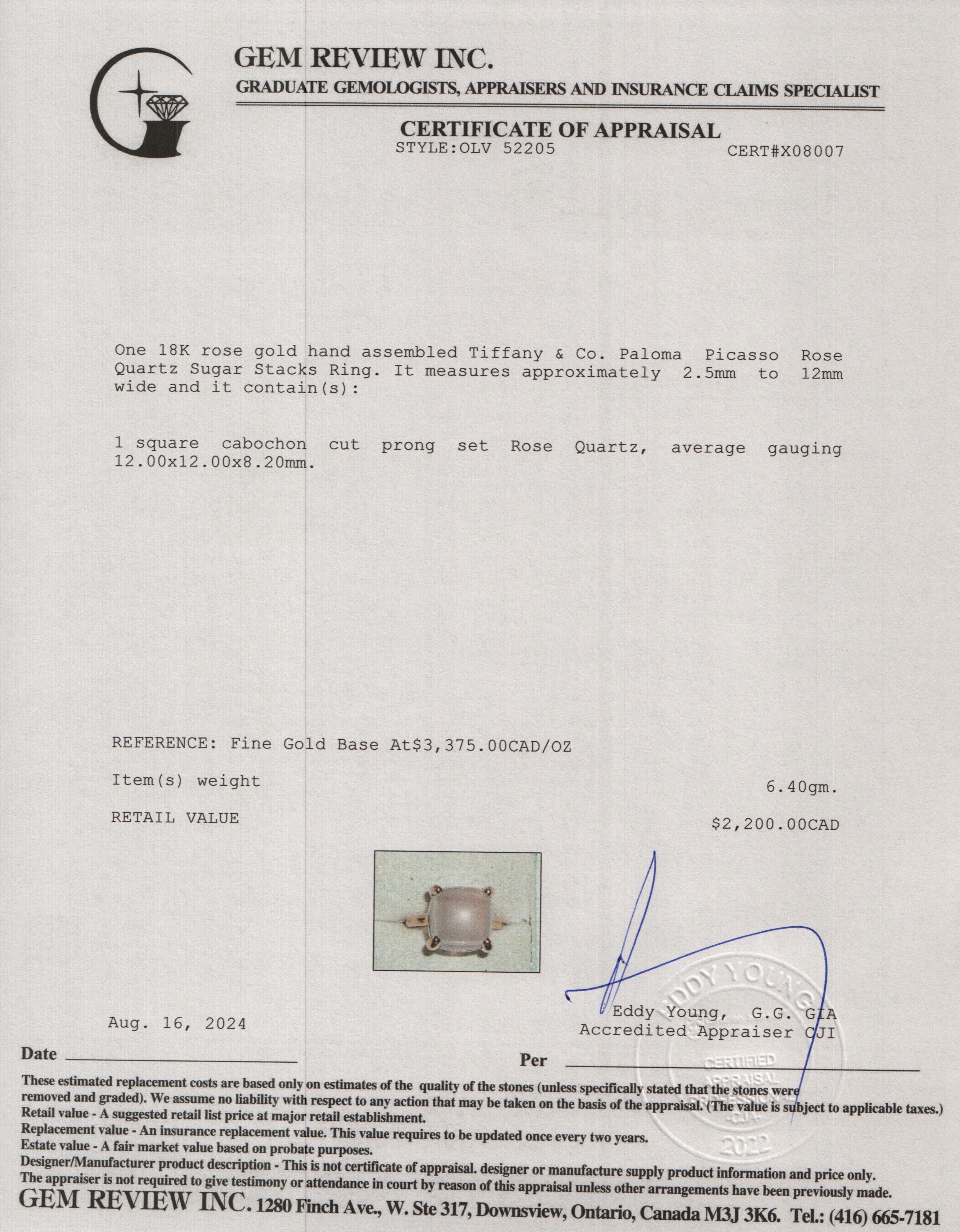 Paloma Picasso 18k Rose Gold Rose Quartz Sugar Stacks Ring, Size 6