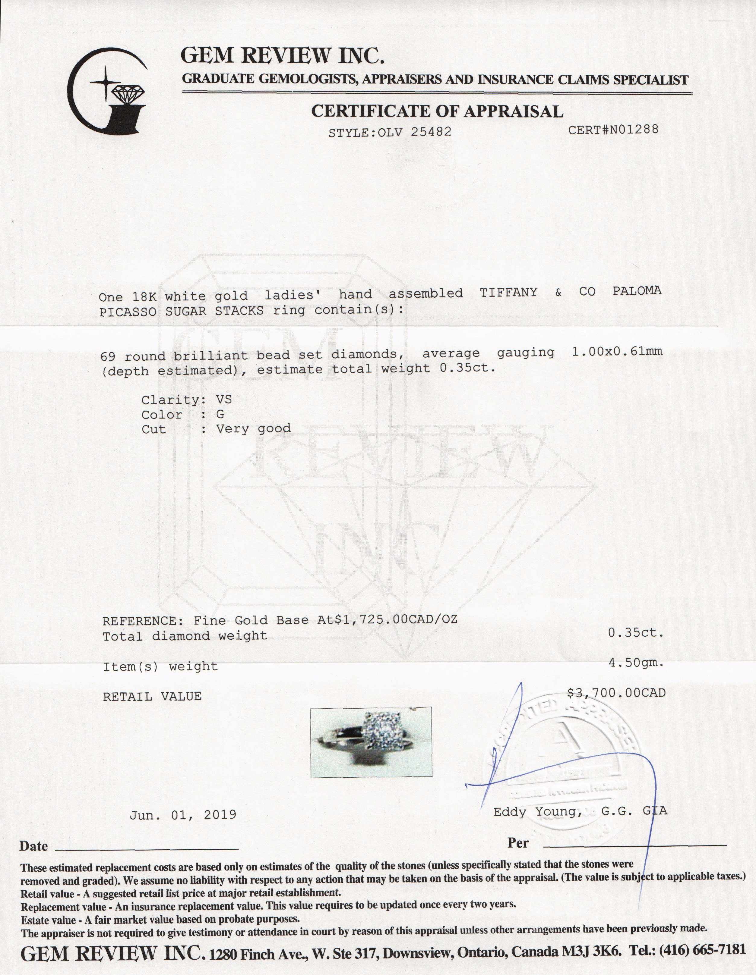 Tiffany & Co. Paloma Picasso 18k White Gold & Diamond Sugar Stacks Ring