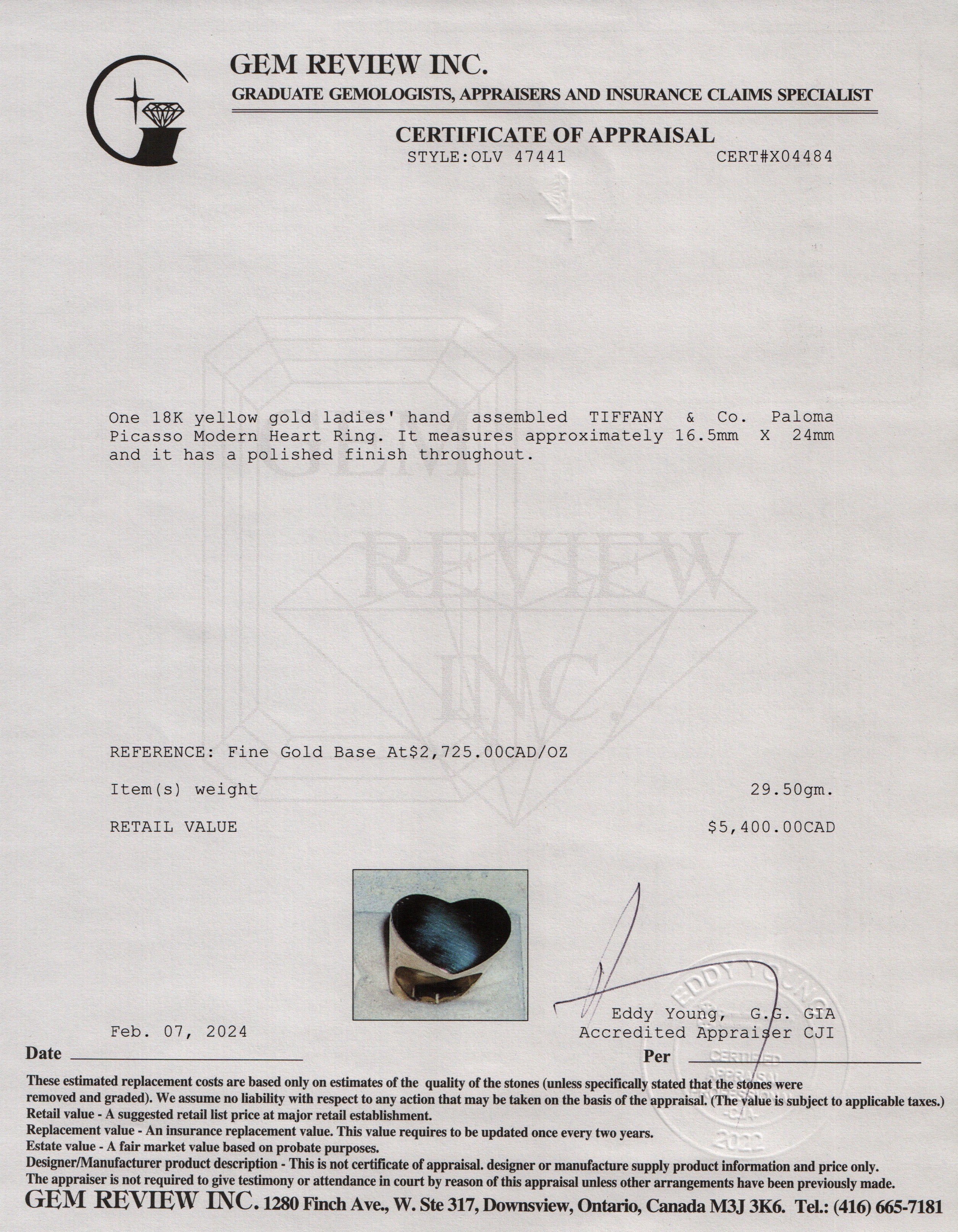 Paloma Picasso 18k Yellow Gold Double Modern Heart Ring, Size 6