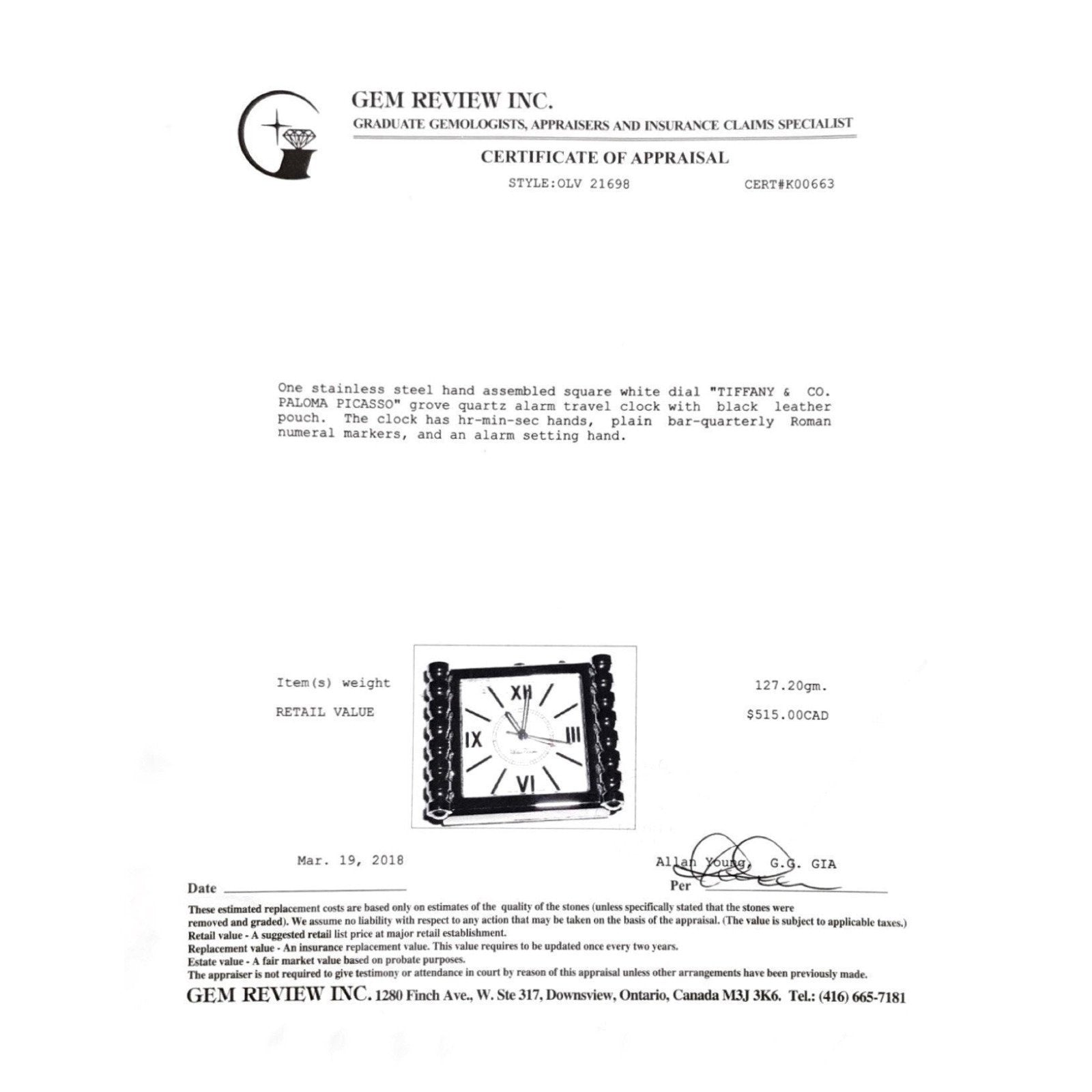 Included Items: Tiffany & Co. Black Leather Pouch and Gem Review Appraisal