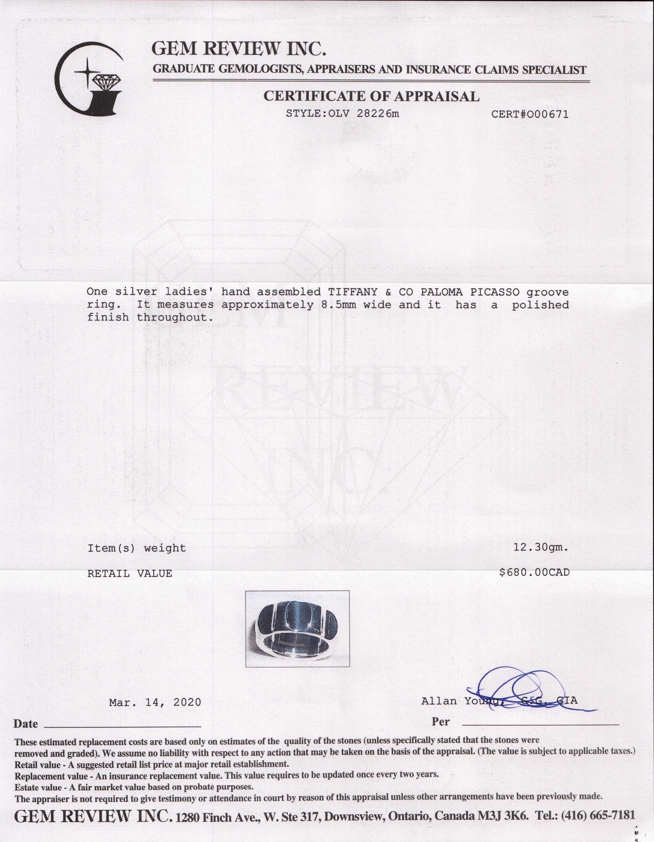 - Signature/Hallmarks: Tiffany & Co. Paloma Picasso 925
