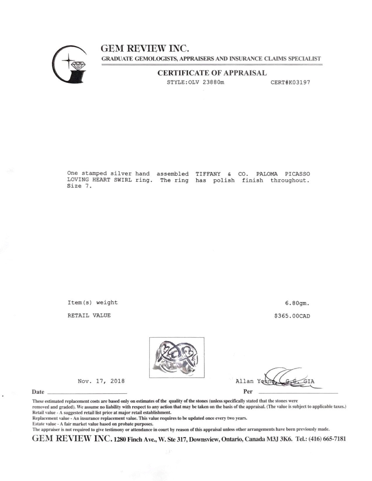 Tiffany & Co. Paloma Picasso Loving Heart Swirl Ring