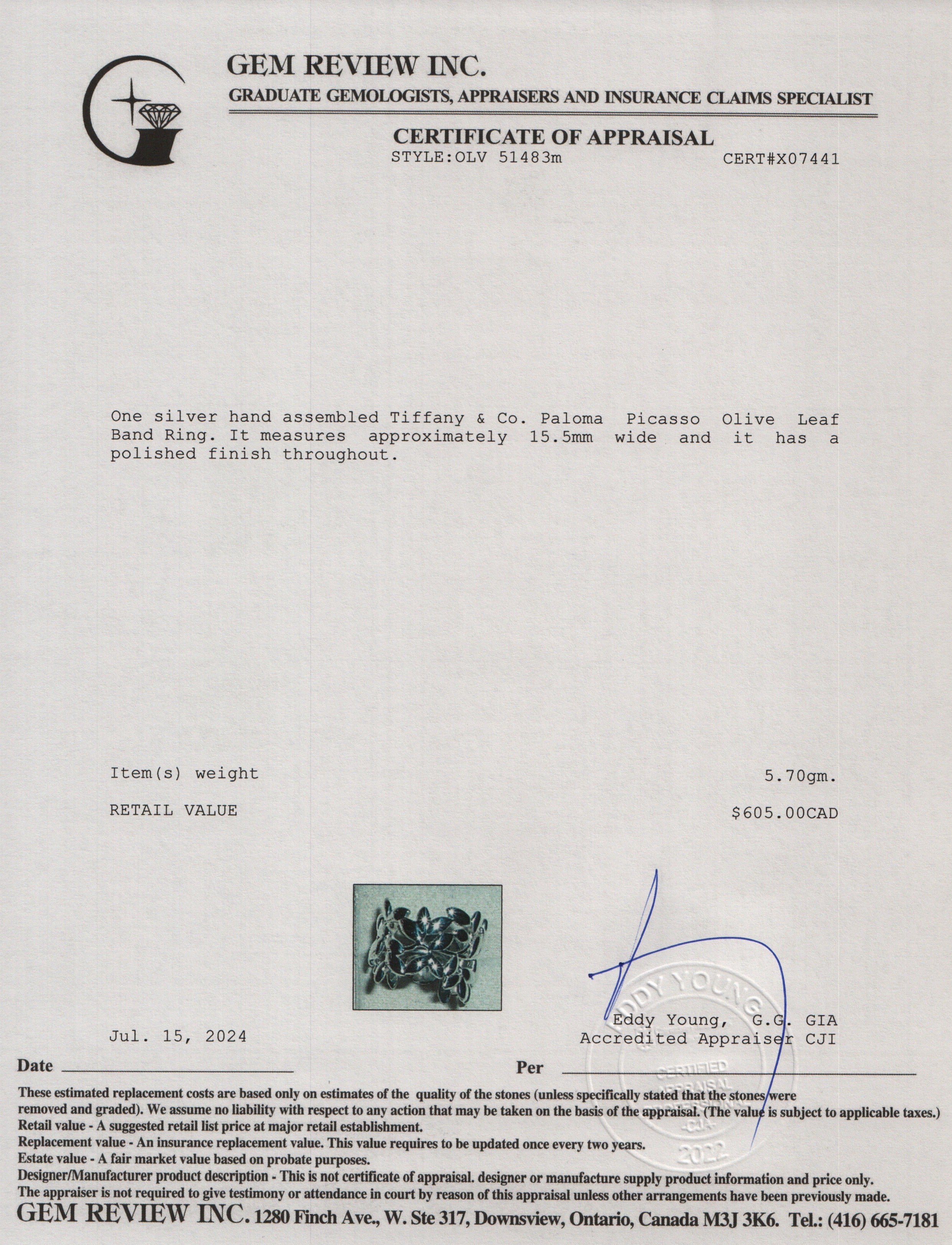 Paloma Picasso Olive Leaf Band Ring, Size 7