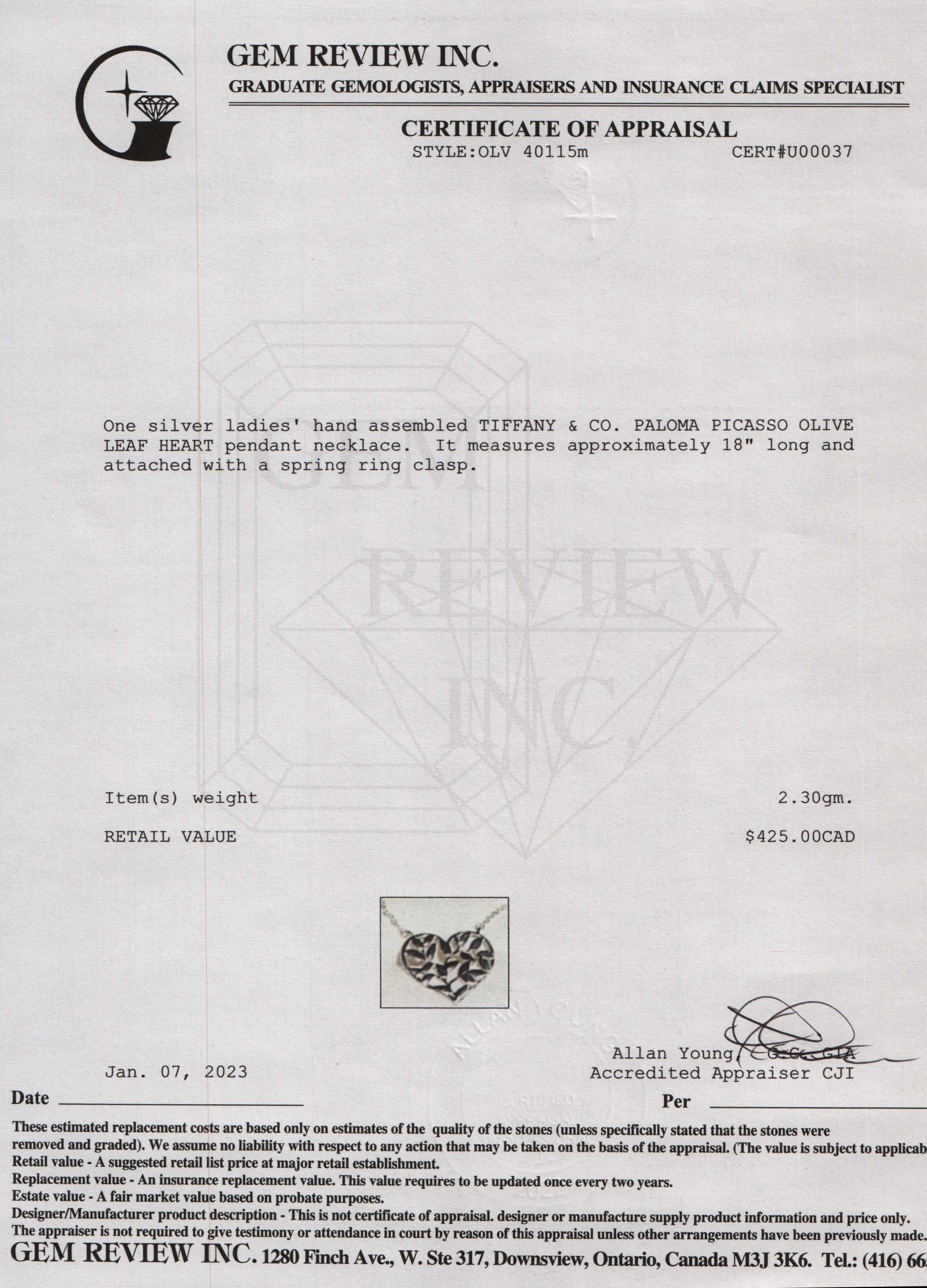 Tiffany & Co. Paloma Picasso Olive Leaf Heart Pendant Necklace