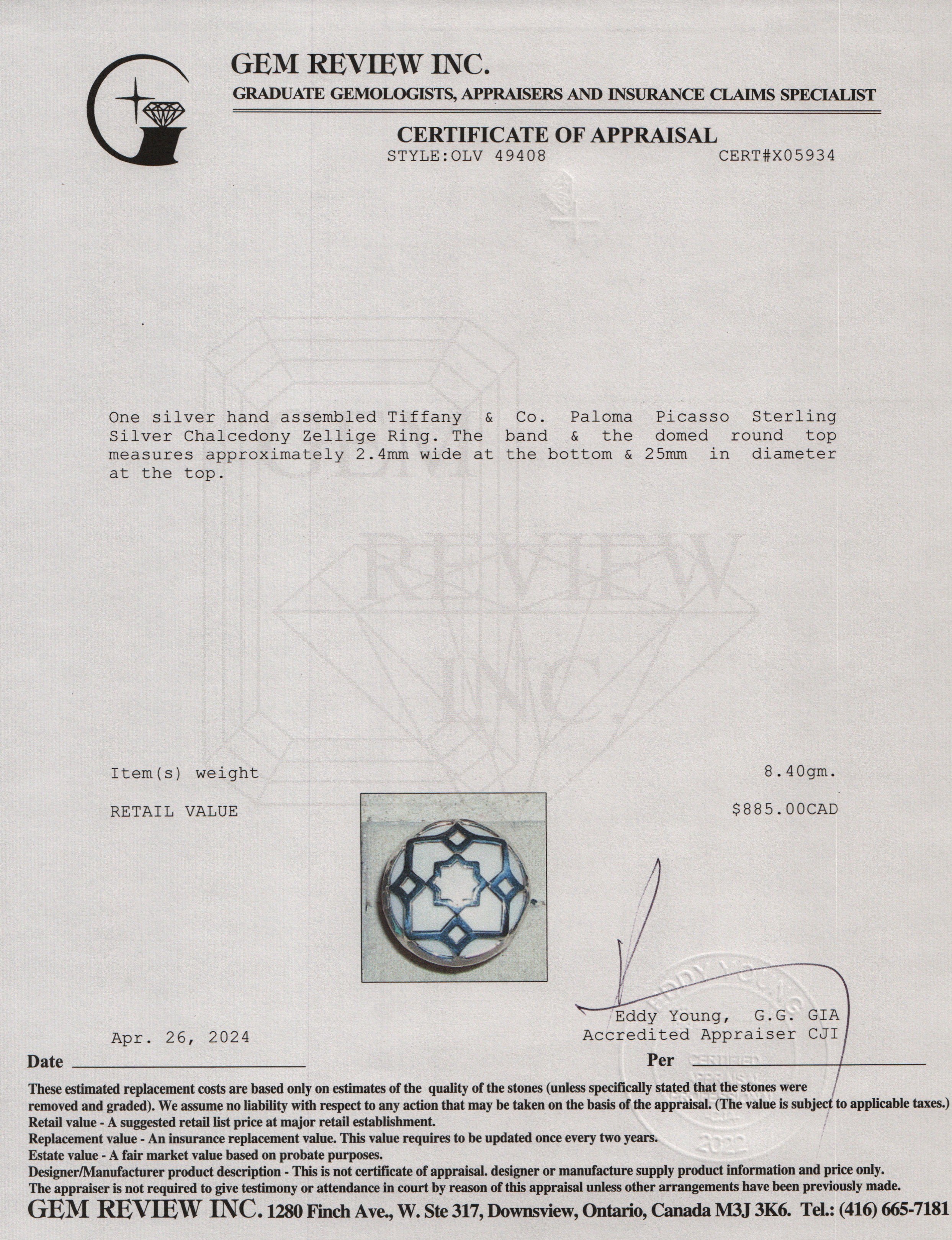 Paloma Picasso Sterling Silver Chalcedony Zellige Ring, Size 5.25