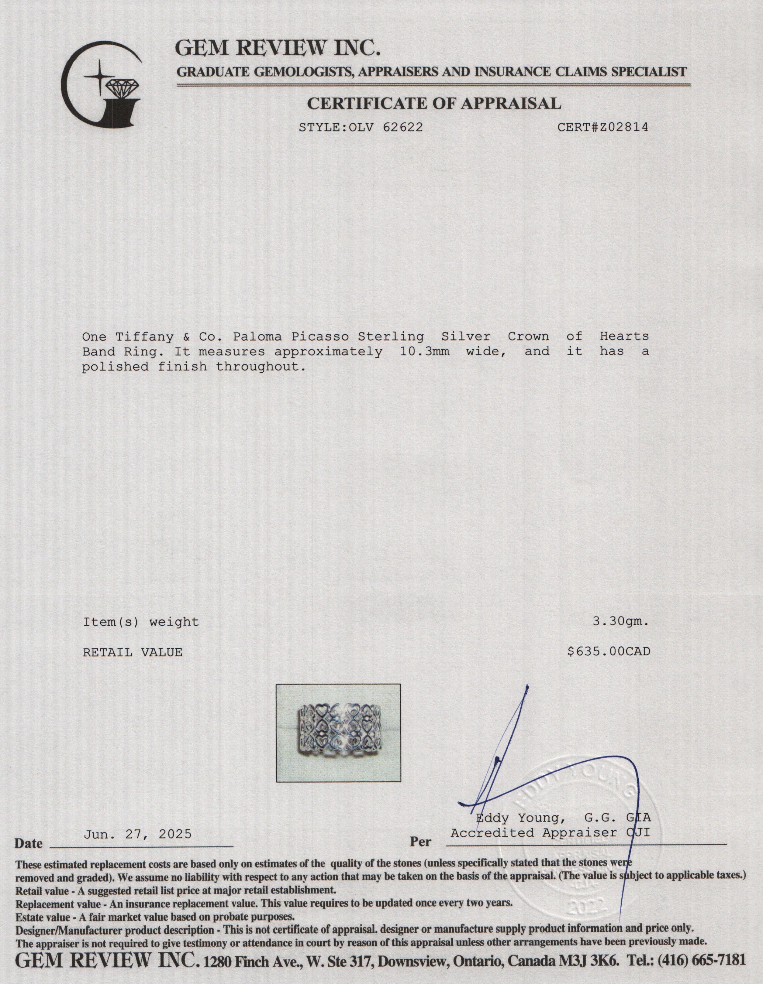 Paloma Picasso Sterling Silver Crown of Hearts Band Ring, Size 6