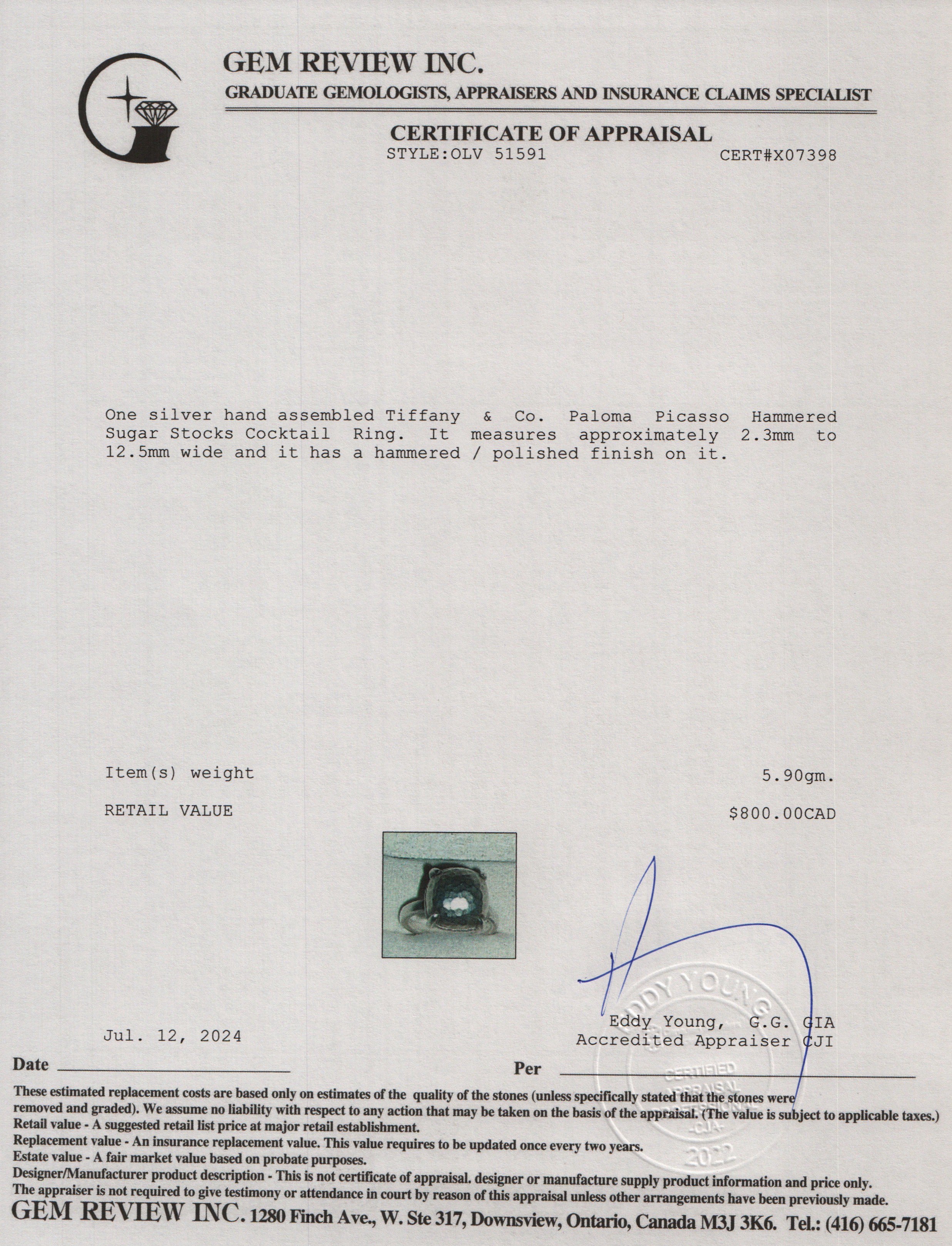 Paloma Picasso Sterling Silver Hammered Sugar Stacks Cocktail Ring, Size 6