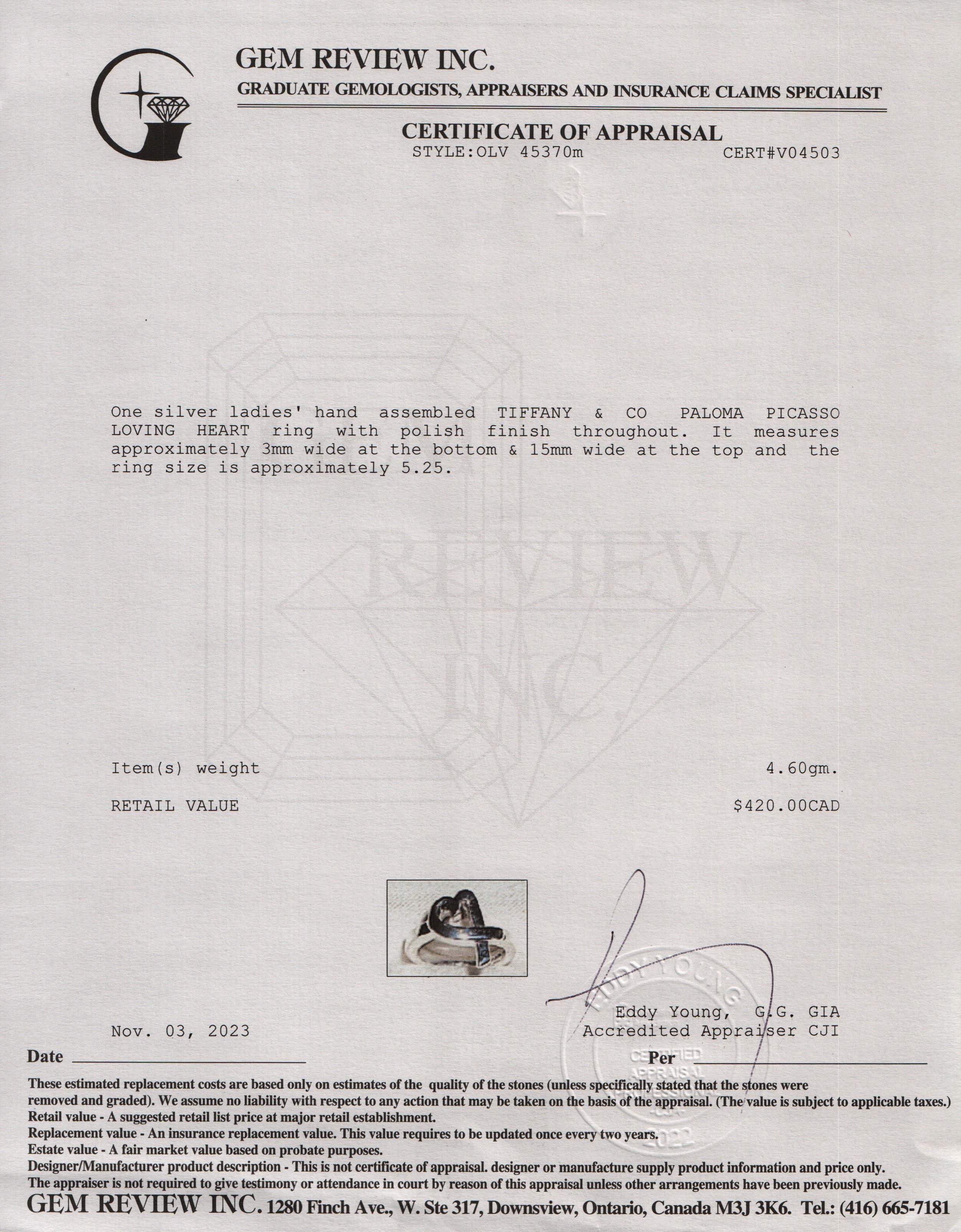 Paloma Picasso Sterling Silver Loving Heart Ring, Size 5.25